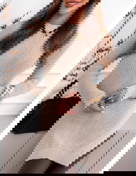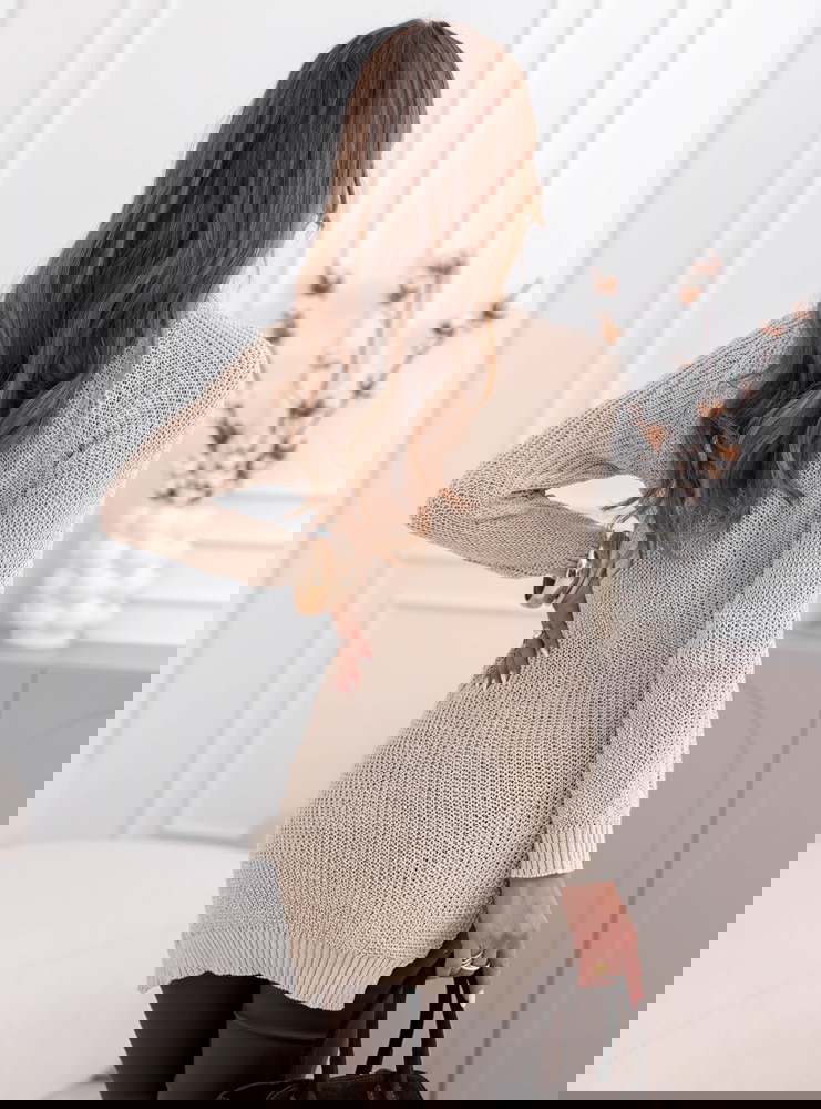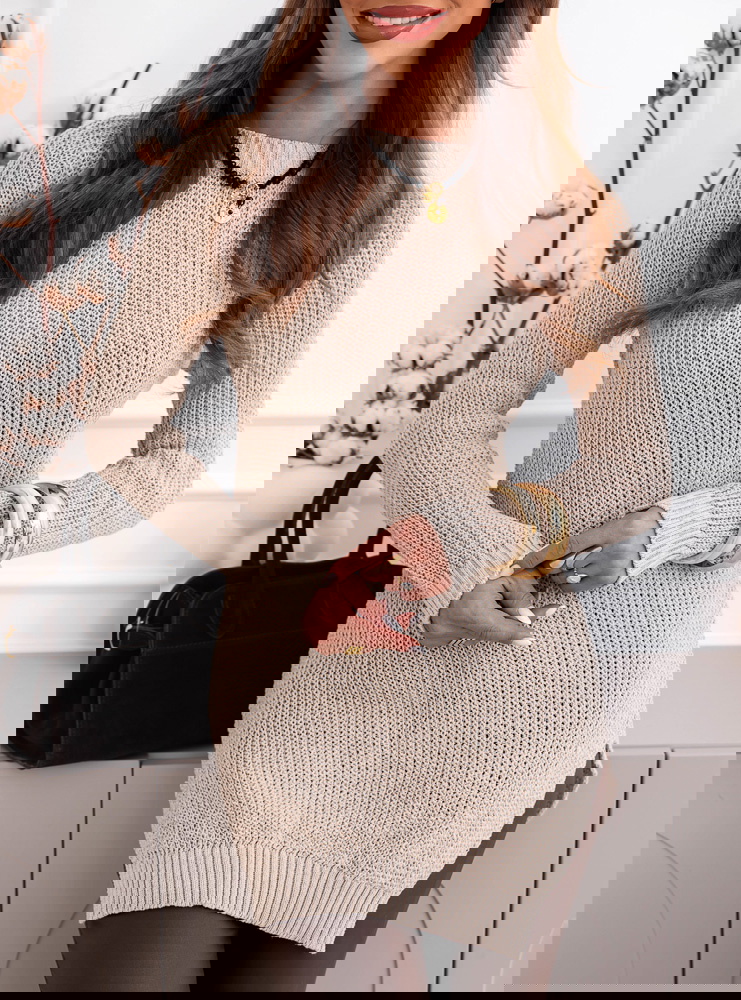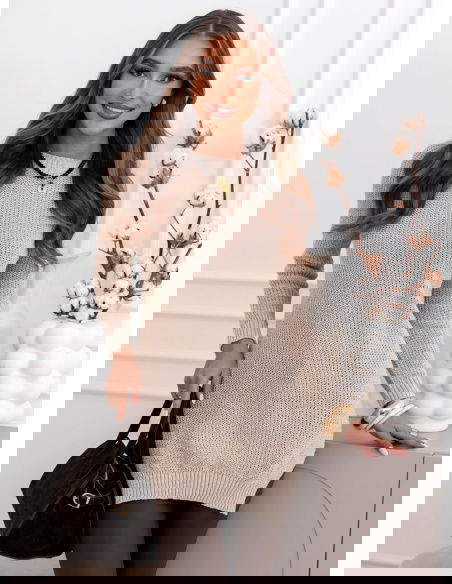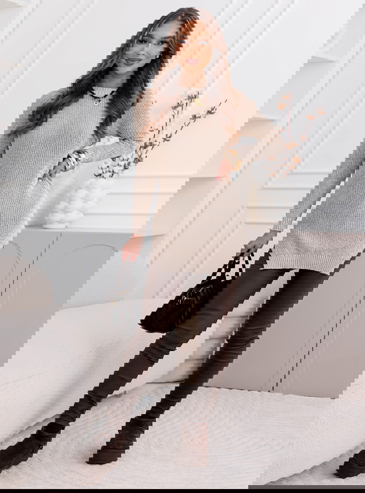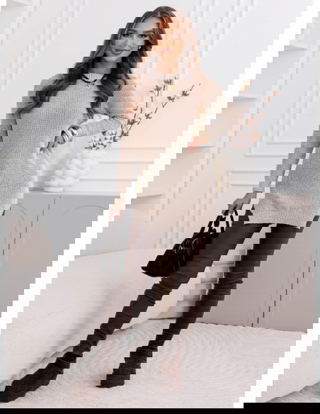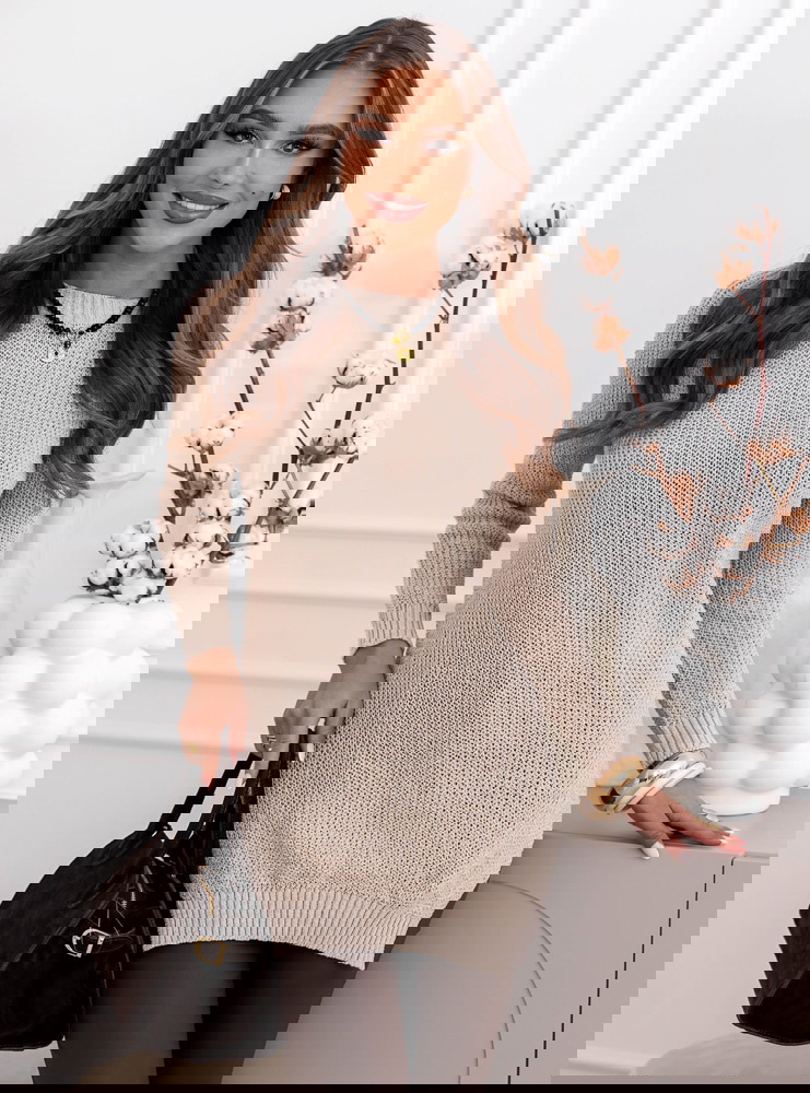 Beżowy sweter z rozcięciami Kolleen to idealne połączenie klasyki i nowoczesnego stylu. Jego prosty, elegancki fason został przełamany modnym detalem w postaci rozcięć po bokach, które nadają mu lekkości i swobodnego charakteru. To model, który doskonale wpisuje się w jesienny klimat – przytulny, ale zarazem kobiecy i stylowy. Beżowy kolor wprowadza do stylizacji ciepło i subtelność, tworząc harmonijną całość. Sweter prezentuje się świetnie zarówno w casualowych, jak i bardziej dopracowanych zestawieniach. Luźniejszy krój zapewnia wygodę, a rozcięcia delikatnie podkreślają sylwetkę, dodając jej lekkości. To propozycja, która łączy w sobie minimalizm i elegancję w codziennym wydaniu. Beżowy sweter z rozcięciami to idealny wybór na dni, kiedy chcesz wyglądać stylowo, ale czuć się swobodnie i komfortowo.