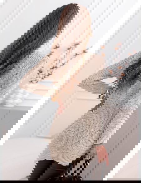 Beżowy sweter z rozcięciami Kolleen doskonale sprawdzi się w codziennych stylizacjach. Można go zestawić z jeansami, legginsami lub eleganckimi spodniami, tworząc look dopasowany do okazji.