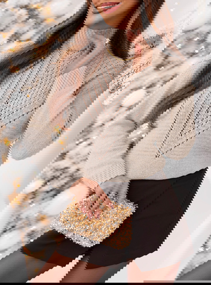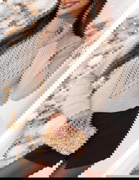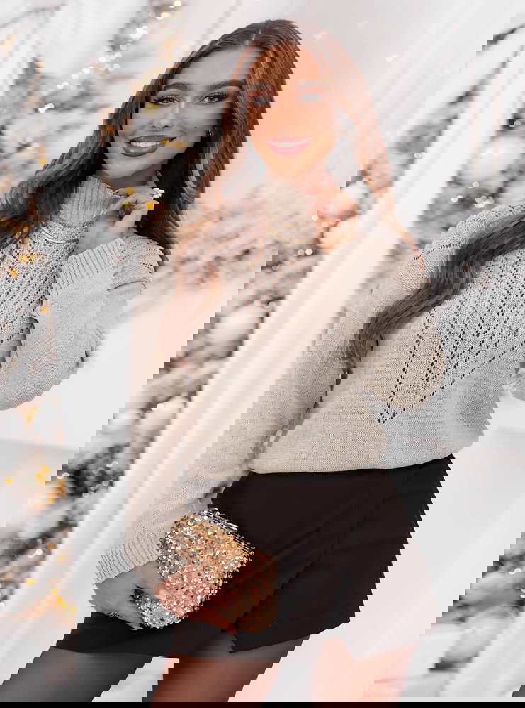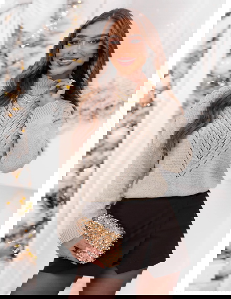 Beżowy sweter z golfem Launale