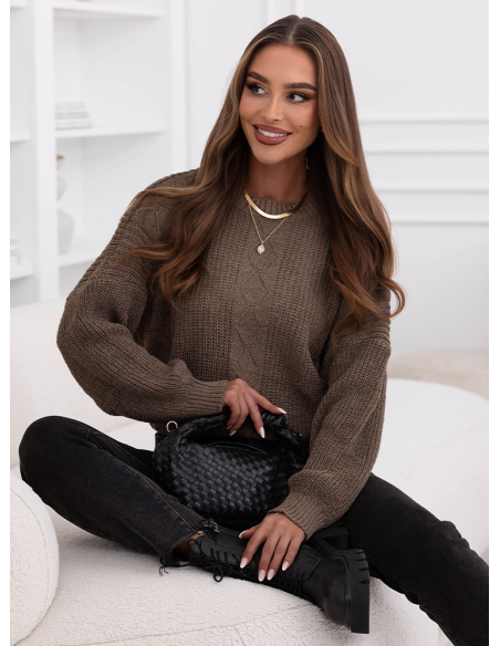 Czekoladowy sweter z ozdobnym splotem Reze sprawdzi się doskonale w wielu sytuacjach. Idealny na co dzień do pracy, na uczelnię czy spacer po mieście, ale równie dobrze odnajdzie się w bardziej eleganckich zestawach.