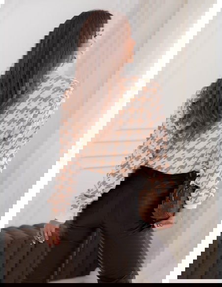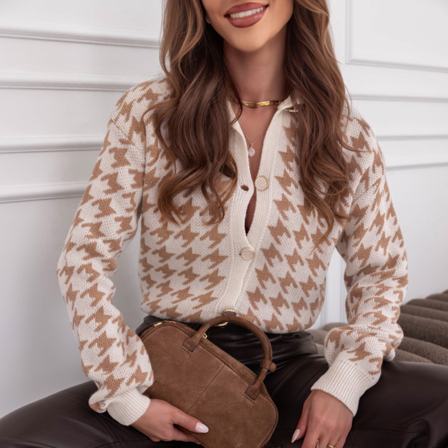 Beżowy sweter w pepitkę zapinany na guziki Lakieshaa