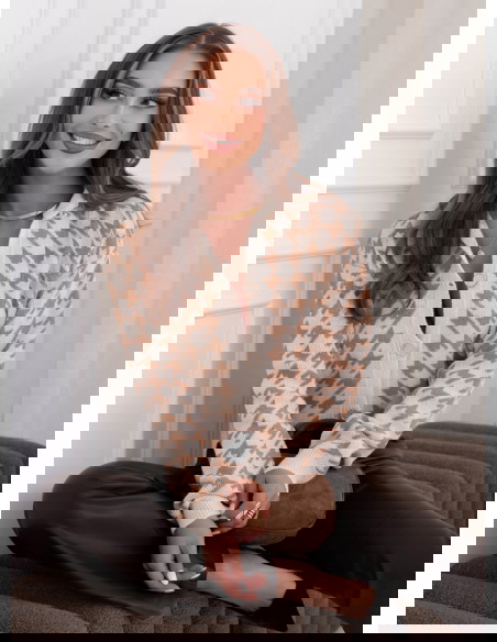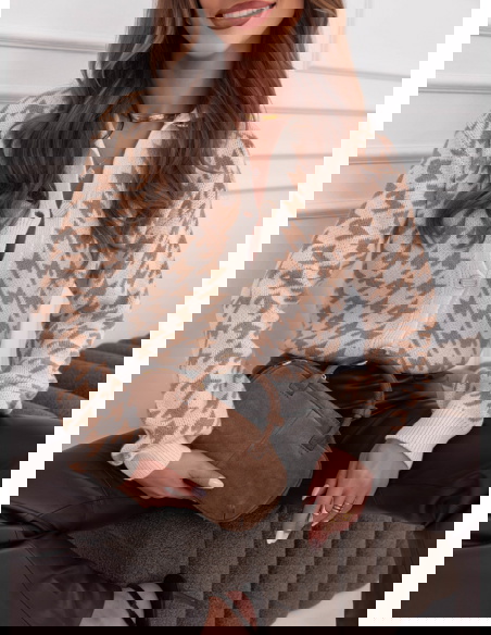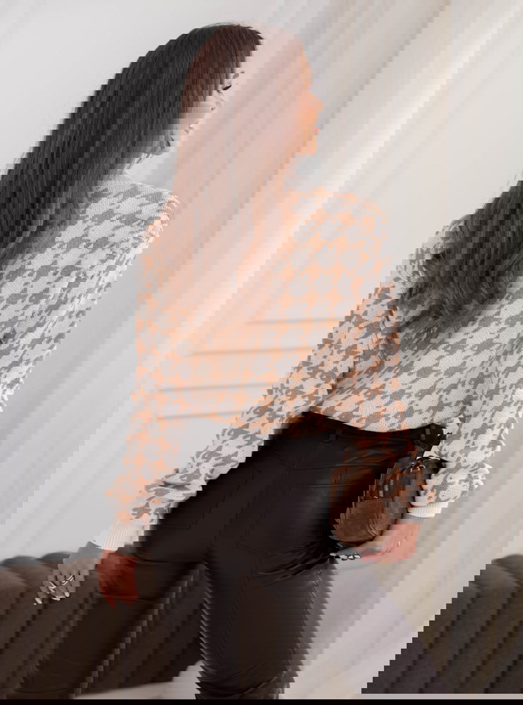 Beżowy sweter w pepitkę zapinany na guziki Lakieshaa to stylowa propozycja dla kobiet, które lubią połączenie klasyki z nutą nowoczesności. Charakterystyczny wzór w pepitkę przyciąga uwagę i nadaje całości eleganckiego wyrazu, a beżowa kolorystyka dodaje mu subtelności i ciepła. Sweter ma niezwykle kobiecy krój, który pięknie układa się na sylwetce, zapewniając przy tym wygodę i swobodę ruchów. Guziki z przodu dodają mu lekko retro charakteru i sprawiają, że można go nosić zarówno zapiętego, jak i rozpiętego – w zależności od okazji. To model, który łączy ponadczasowy styl z nowoczesnym akcentem. Świetnie wpisuje się w jesienno-zimowy klimat, tworząc przytulny, ale stylowy look. To idealny wybór dla kobiet, które cenią detal i elegancję w codziennym wydaniu.