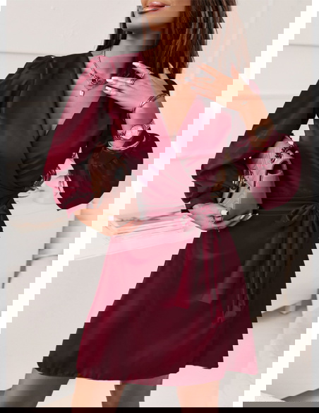 Bordowa satynowa sukienka przekładana z dekoltem Arelkiaa to kwintesencja elegancji i kobiecego uroku. Jej głęboki odcień wina w połączeniu z delikatnym połyskiem tkaniny tworzy efekt pełen klasy i subtelnego blasku. To model, który zachwyca swoją prostotą, a jednocześnie przyciąga uwagę dopracowanymi detalami. Przekładany krój pięknie podkreśla dekolt i talię, nadając sylwetce harmonijnych proporcji. Długie, lekko bufiaste rękawy dodają całości lekkości i elegancji. To sukienka stworzona z myślą o kobietach, które cenią ponadczasowy styl i delikatne, kobiece akcenty. Idealnie sprawdzi się w sezonie jesienno-zimowym, wprowadzając ciepło i szyk do każdej stylizacji. Jej klasyczny, a zarazem efektowny charakter sprawia, że to wybór, który nigdy nie wychodzi z mody. W tej sukience można poczuć się wyjątkowo i z pełną pewnością siebie – niezależnie od okazji.