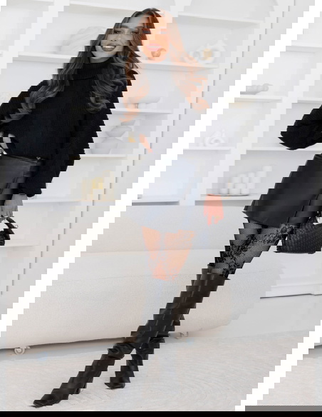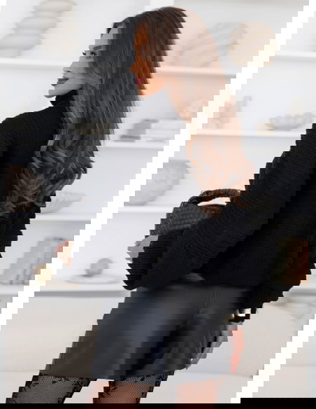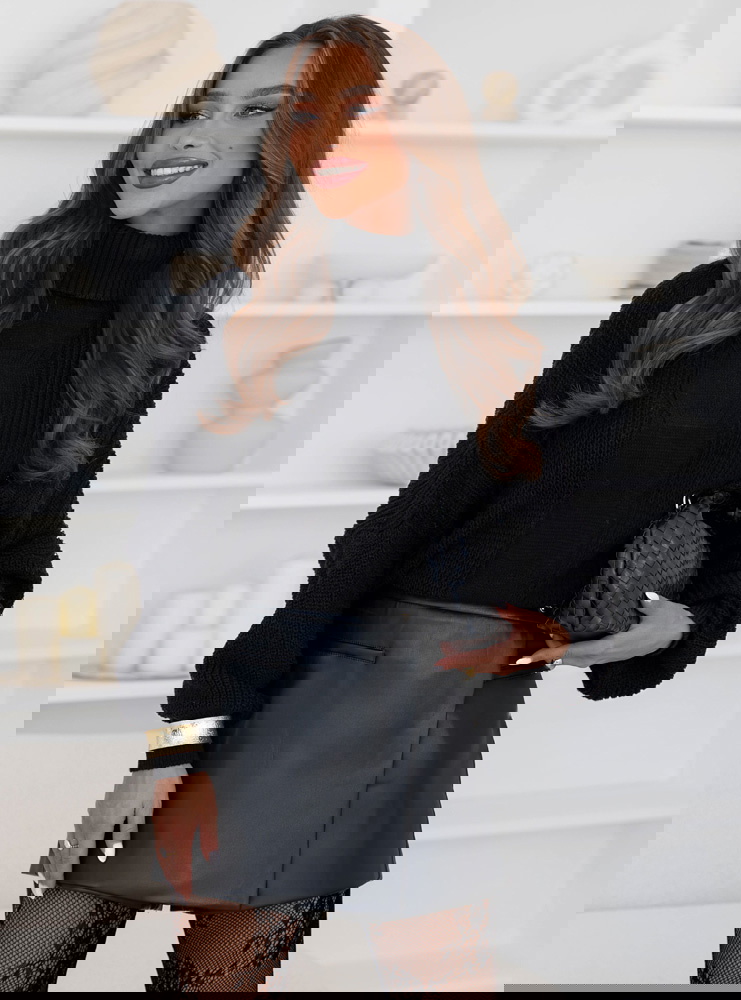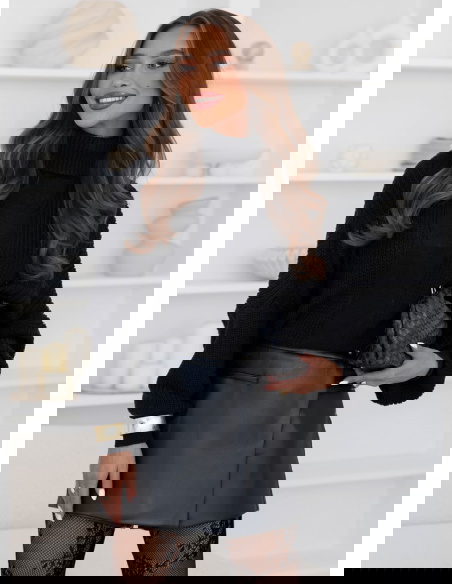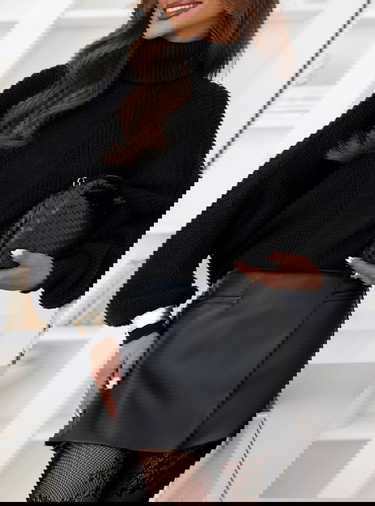 Czarny sweter oversize z golfem Marym to klasyk w nowoczesnym wydaniu – elegancki, wygodny i niezwykle uniwersalny. Jego ponadczasowy kolor sprawia, że dopasujesz go do niemal każdej stylizacji.