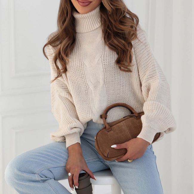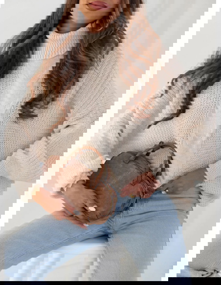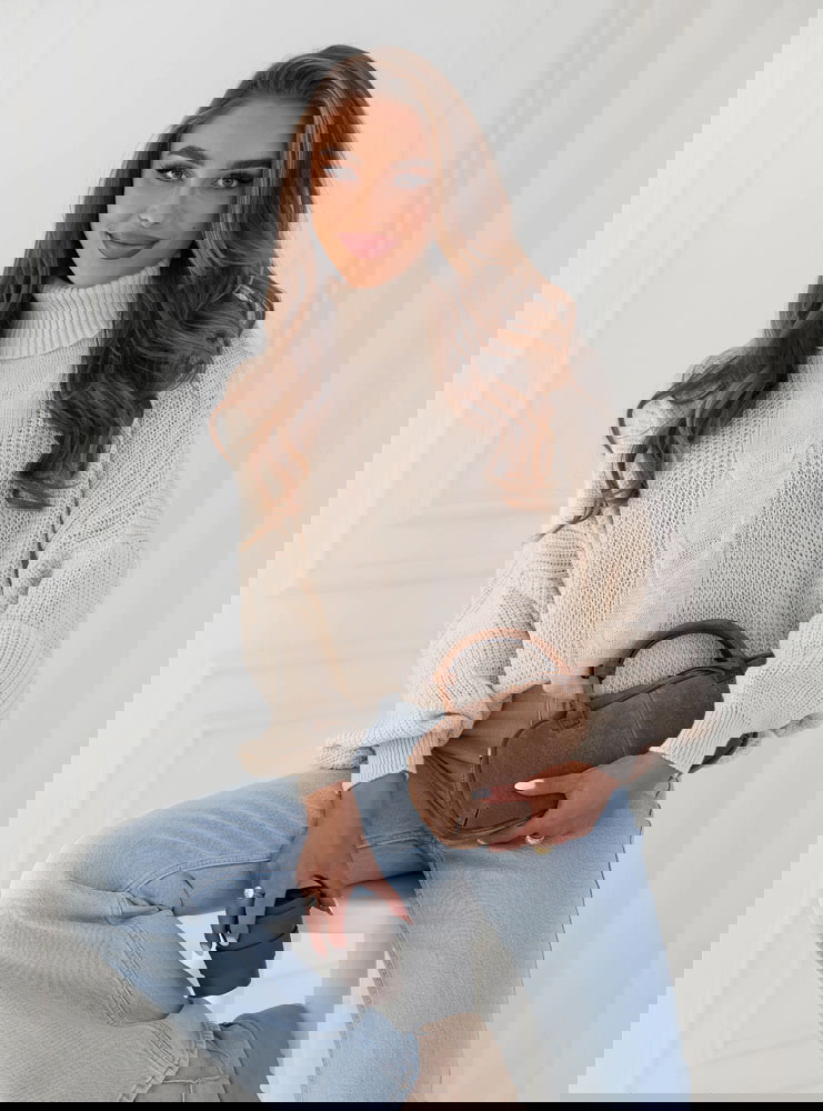 Sweter oversize z golfem Marym - ecru to kwintesencja przytulnego stylu w eleganckim wydaniu. Jego luźny, nonszalancki fason łączy wygodę z modnym charakterem, tworząc idealną propozycję na chłodniejsze dni. Jasny odcień ecru dodaje całości subtelności i sprawia, że sweter wygląda wyjątkowo lekko i świeżo. To model, który doskonale wpisuje się w jesienno-zimowy klimat, otulając ciepłem i miękkością. Luźny krój podkreśla swobodny, nieco romantyczny styl, a jednocześnie pozwala na wiele możliwości stylizacji. Golf nadaje mu przytulnego charakteru i delikatnej elegancji. To sweter, który można nosić zarówno na co dzień, jak i w bardziej dopracowanych zestawieniach. Ecru pięknie współgra z klasycznymi kolorami jesieni – brązem, beżem czy czernią, tworząc harmonijny, modny efekt. To propozycja dla kobiet, które cenią komfort, styl i ponadczasową prostotę w jednym.