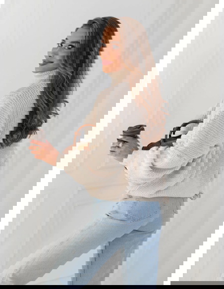Sweter oversize z golfem Marym - ecru sprawdzi się doskonale na co dzień, do pracy, na spacer czy spotkanie z przyjaciółkami. Można go nosić do jeansów, legginsów lub spódnicy, tworząc zarówno luźne, jak i bardziej dopracowane stylizacje.