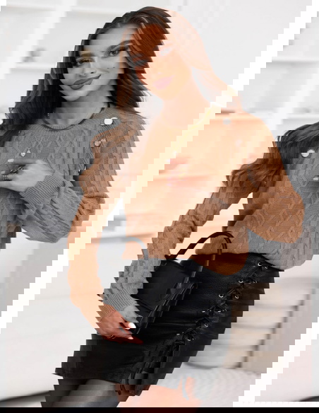 Sweter z ozdobnymi guzikami Rydia - mocha mousse