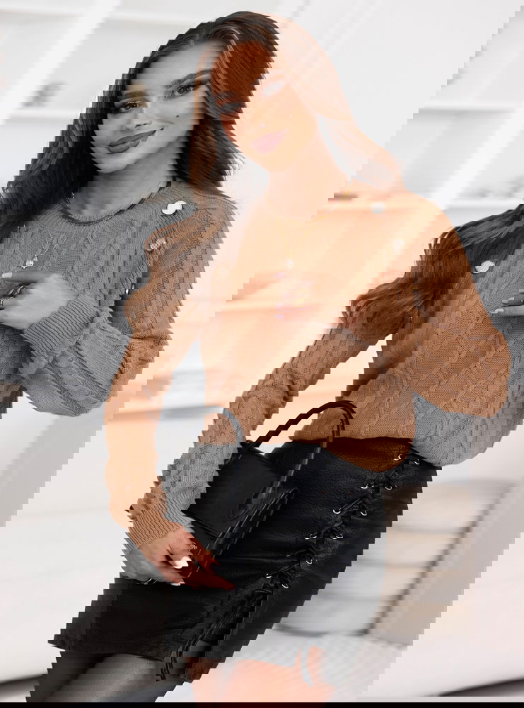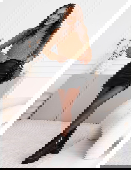 Sweter z ozdobnymi guzikami Rydia - mocha mousse to połączenie elegancji i subtelnego uroku w codziennym wydaniu. Jego ciepły odcień idealnie wpisuje się w jesienny klimat, dodając stylizacjom przytulności i klasy. To model, który przyciąga wzrok dzięki efektownym guzikom umieszczonym przy ramionach – detal ten nadaje mu wyjątkowego charakteru. Warkoczowy splot podkreśla jego modny, ponadczasowy styl i sprawia, że sweter prezentuje się niezwykle kobieco. To idealna propozycja dla kobiet, które cenią styl z nutą elegancji, ale nie rezygnują z wygody. Sweter doskonale sprawdzi się w różnych stylizacjach – zarówno codziennych, jak i bardziej dopracowanych. Dzięki uniwersalnemu krojowi i szlachetnemu kolorowi mocha mousse, ten model świetnie komponuje się z jeansami, spódnicami czy skórzanymi spodniami. Sweter z ozdobnymi guzikami – mocha mousse to synonim stylu, wygody i kobiecego wdzięku.