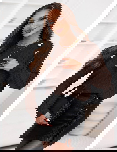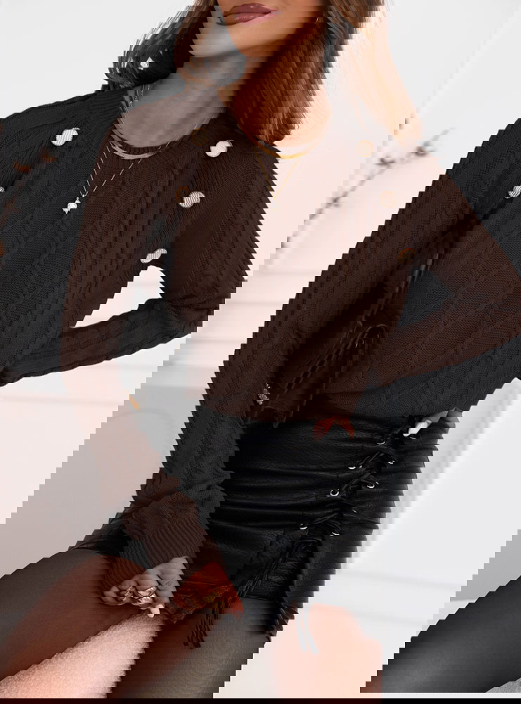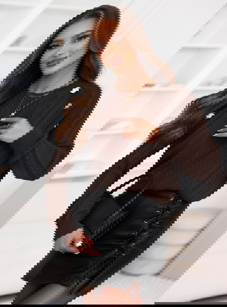 Czekoladowy sweter z ozdobnymi guzikami Rydia