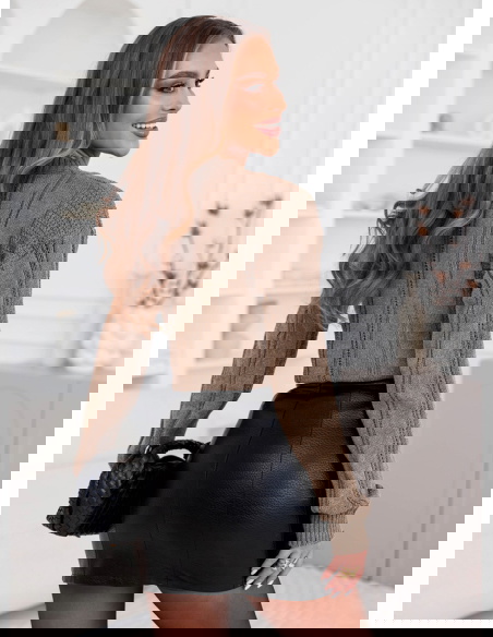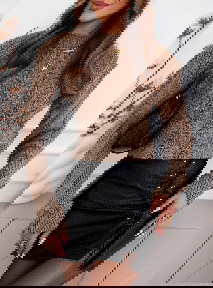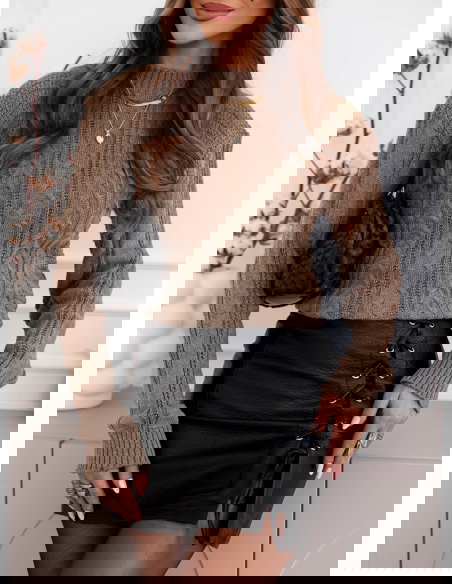 Czekoladowy sweter z warkoczowymi splotami Earldenee