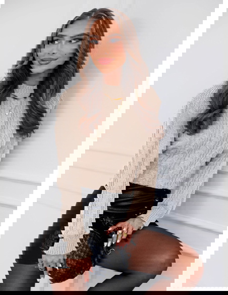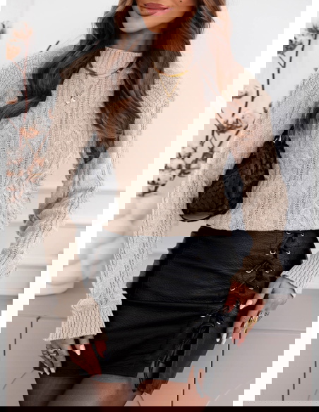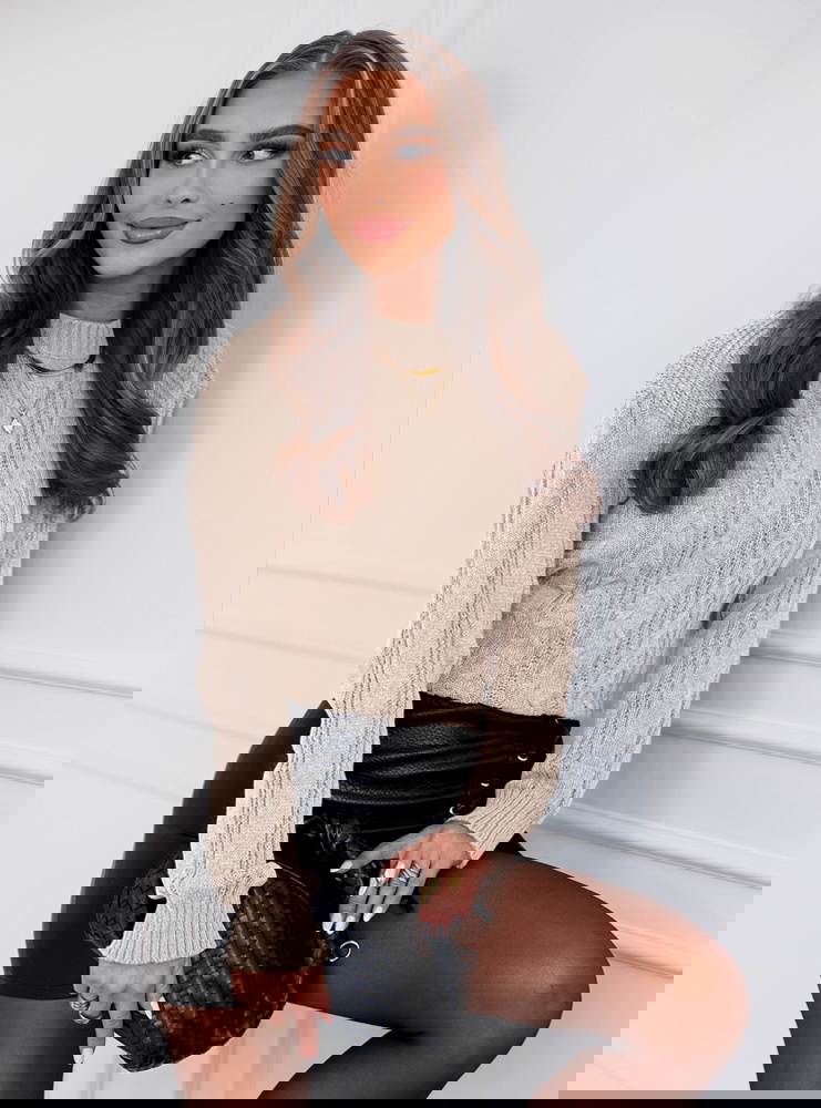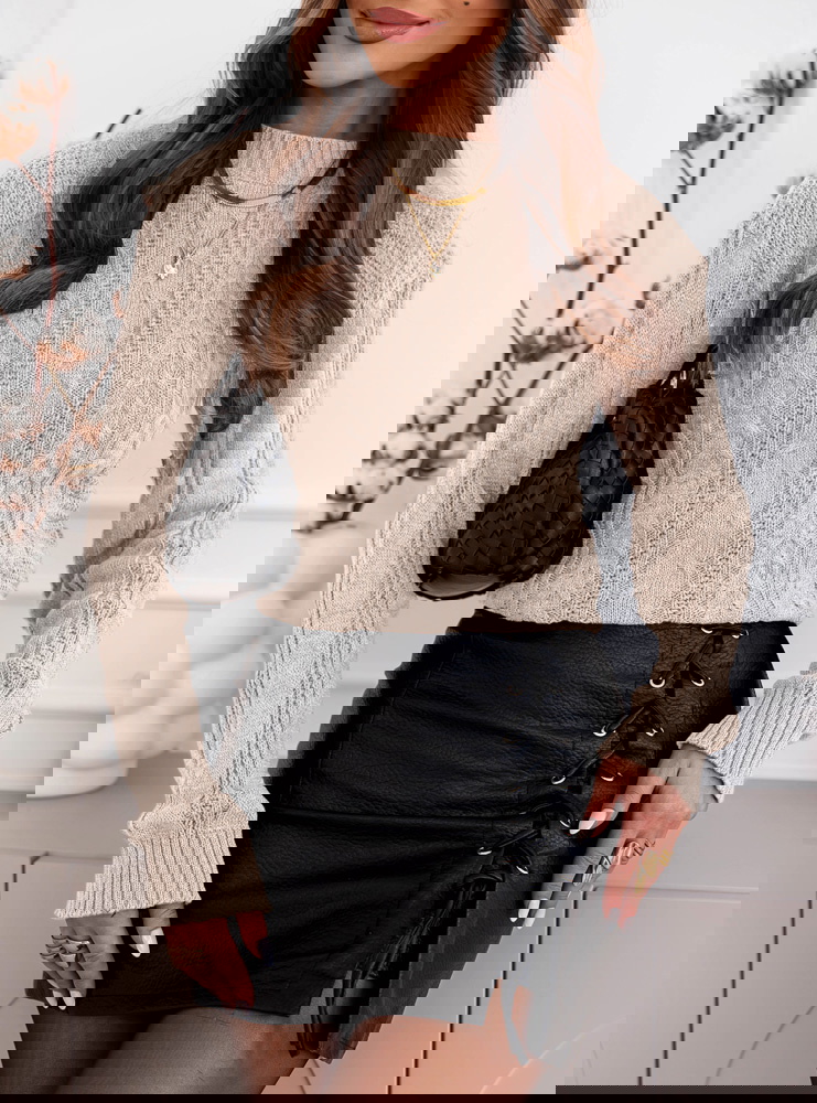 Beżowy sweter z warkoczowymi splotami Earldenee