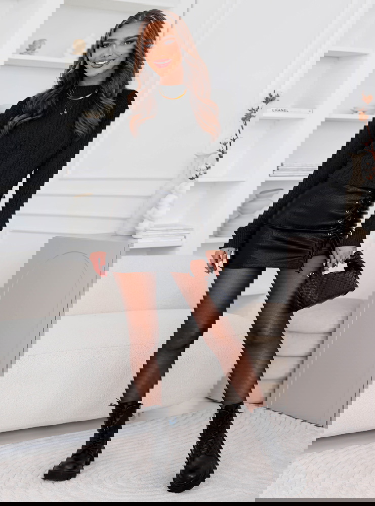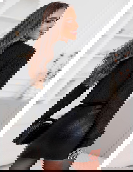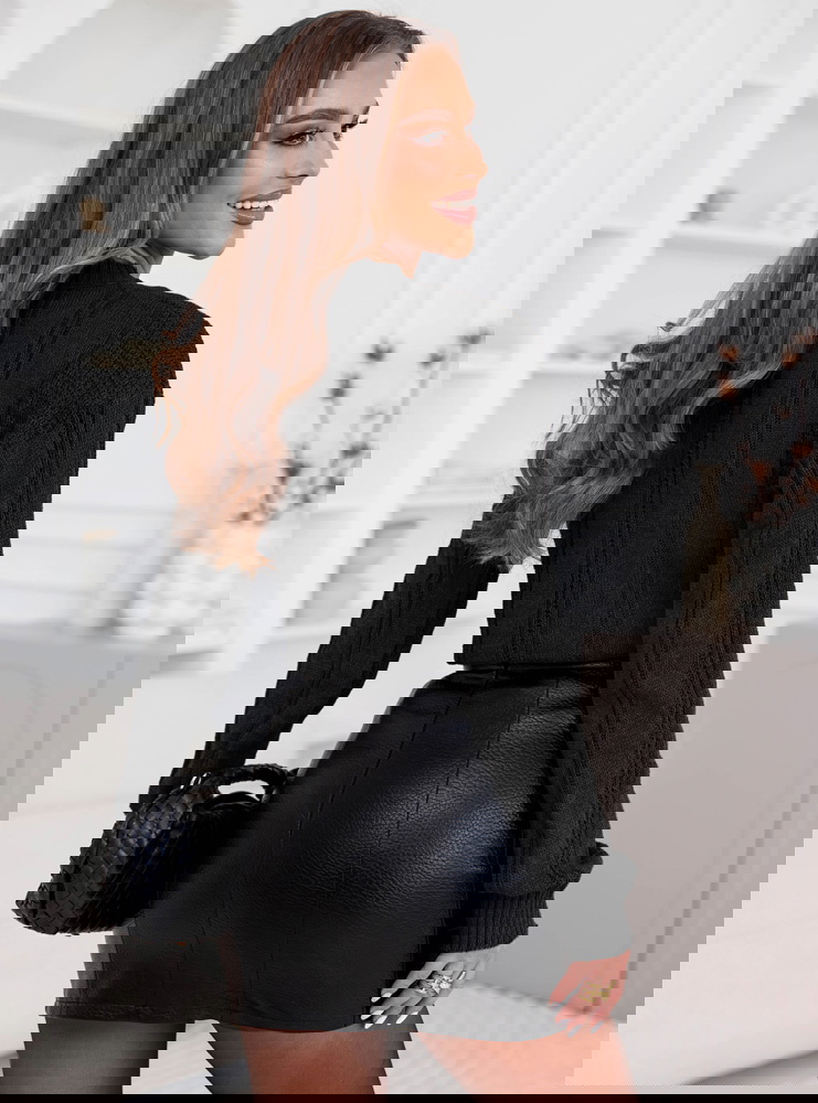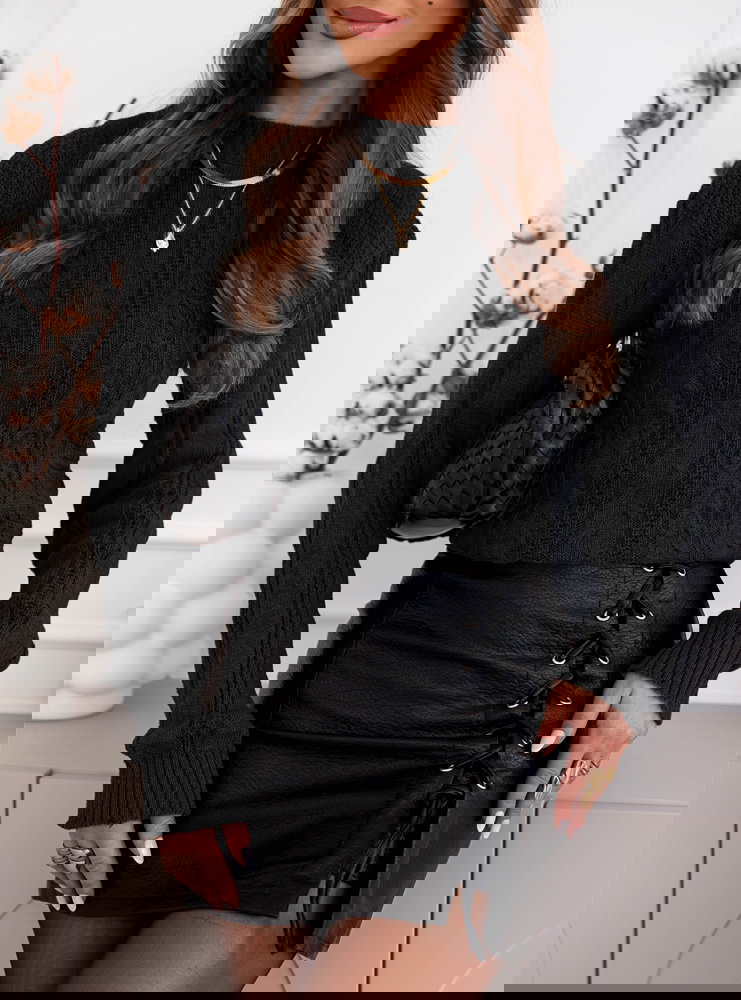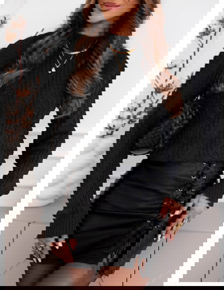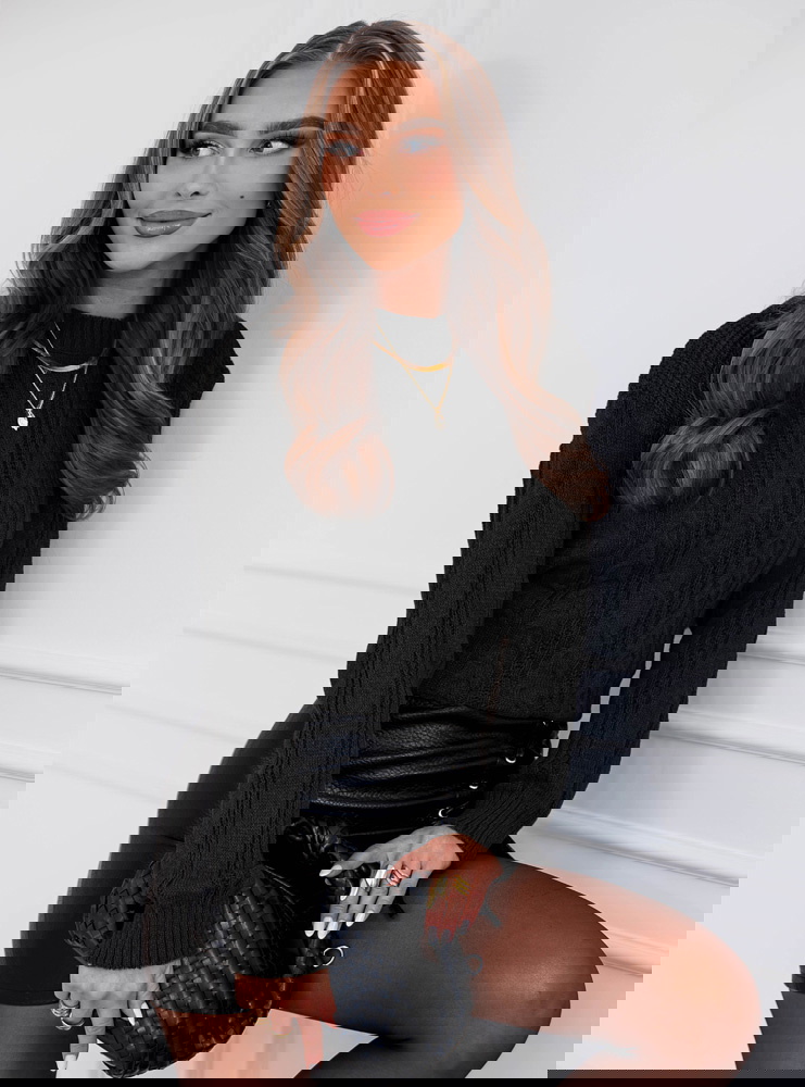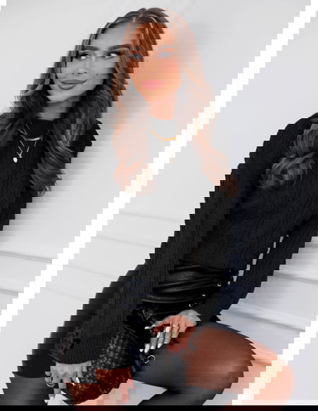 Czarny sweter z warkoczowymi splotami Earldenee
