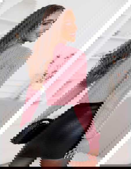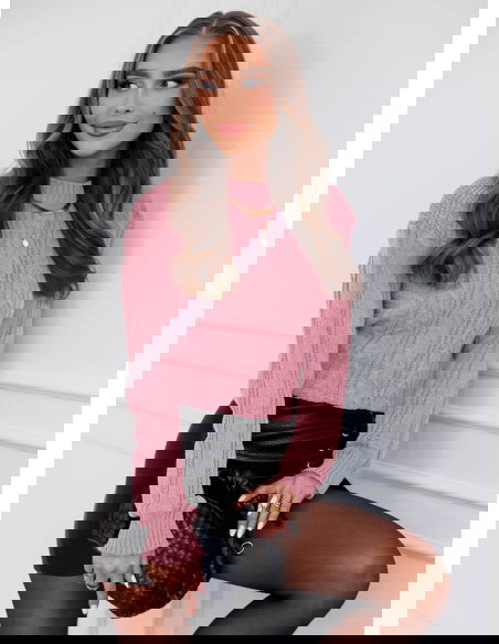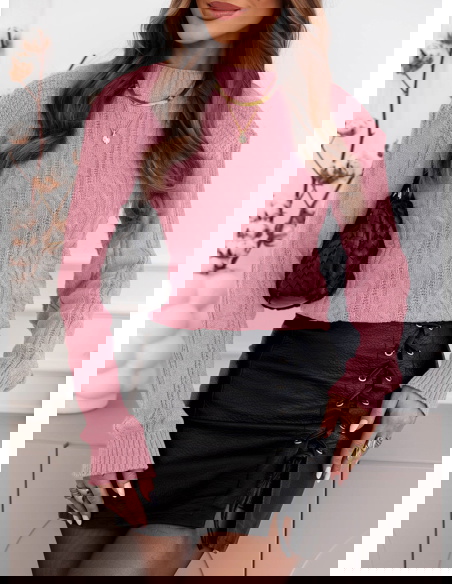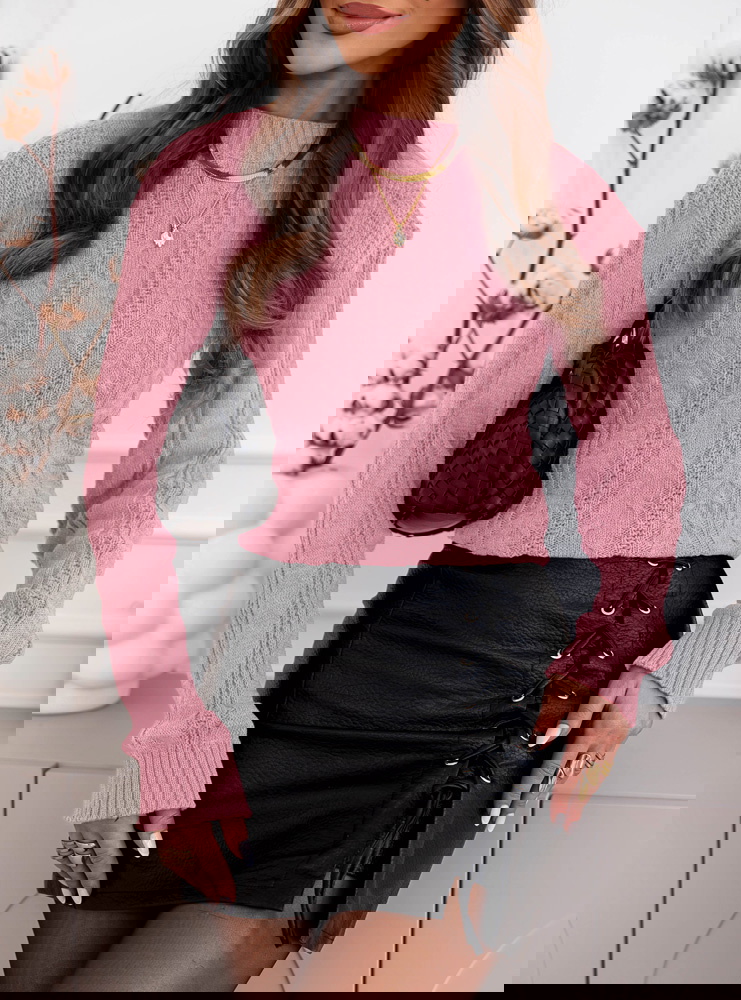 Pudrowy sweter z warkoczowymi splotami Earldenee