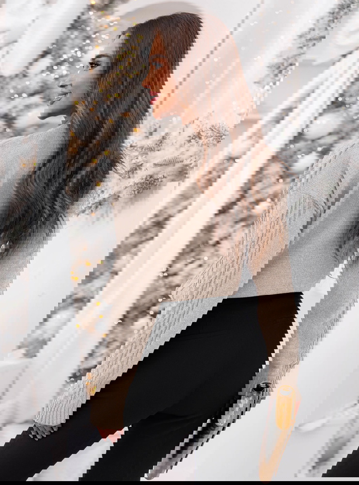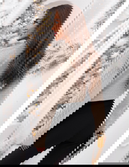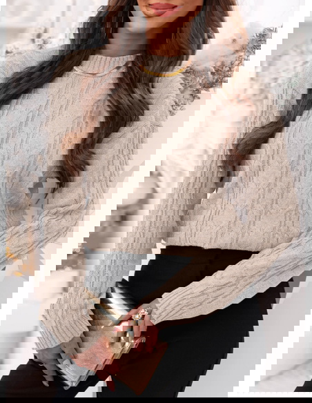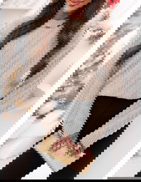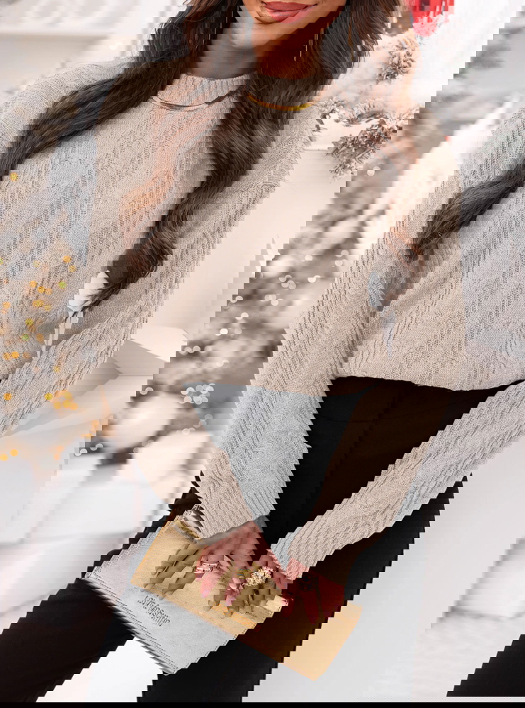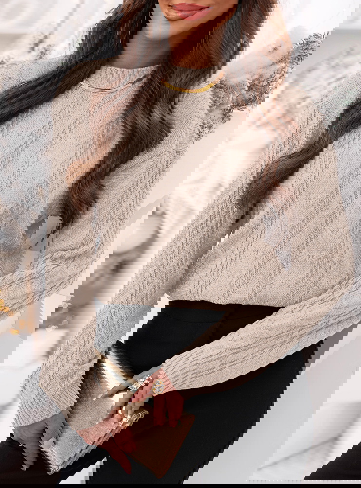 Beżowy sweter z guzikami po boku Eudenia to połączenie subtelnej elegancji i nowoczesnego stylu w jednym. Jego ciepły, naturalny odcień beżu wprowadza do stylizacji harmonię i delikatność, idealnie wpisując się w jesienno-zimowy klimat. To model, który przyciąga uwagę drobnym detalem – ozdobnymi guzikami po boku, nadającymi mu wyjątkowego charakteru. Dzięki nim prosty krój nabiera lekkości i modnego wyrazu. Sweter świetnie prezentuje się zarówno w codziennych, jak i bardziej eleganckich stylizacjach. Jego ponadczasowy design sprawia, że pasuje do wielu okazji i zawsze wygląda stylowo. To propozycja dla kobiet, które cenią sobie wygodę, ale nie chcą rezygnować z gustownego wyglądu. Beżowy kolor nadaje mu uniwersalności, dzięki czemu łatwo dopasujesz go do innych elementów garderoby. Ten sweter to kwintesencja kobiecej klasy i subtelnego uroku – idealny na każdą porę dnia.