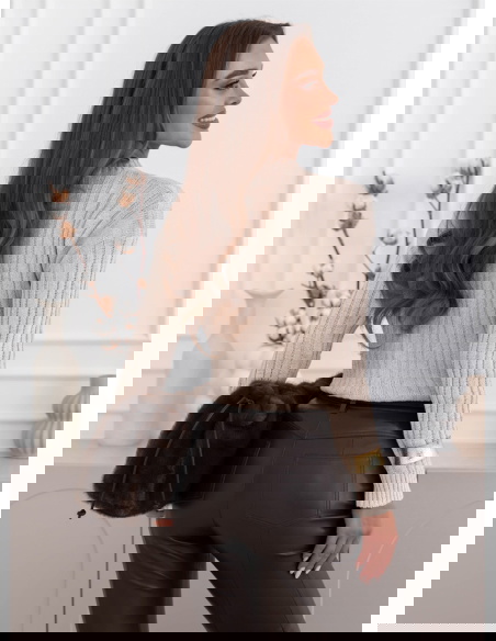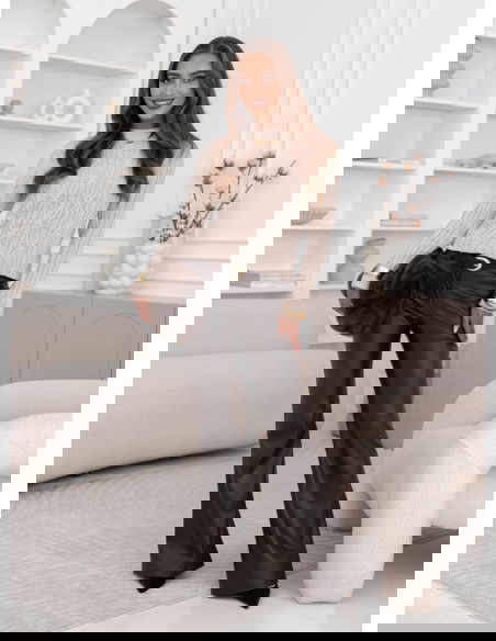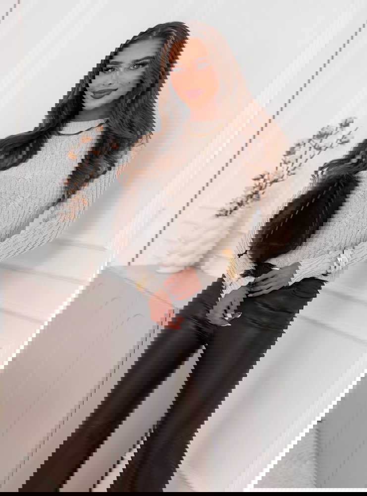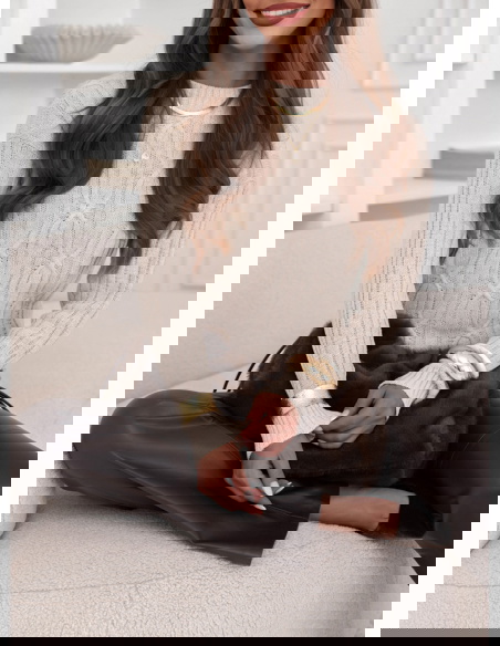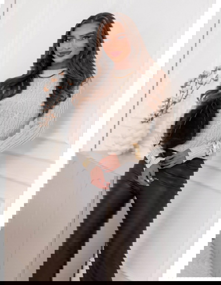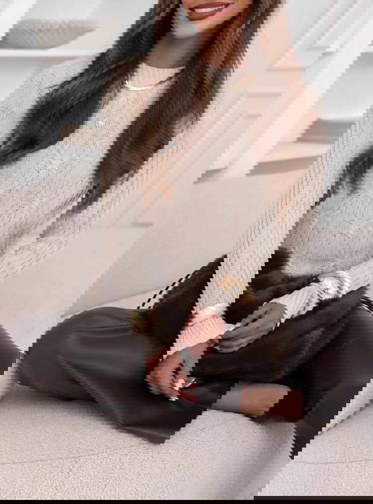 Beżowy dzianinowy sweter z delikatnym wzorem Clauroos to ponadczasowa propozycja, która idealnie wpisuje się w klimat jesiennych stylizacji. Jego subtelny design przyciąga uwagę elegancją i prostotą, a przy tym emanuje ciepłem i przytulnością. To model, który doskonale sprawdzi się zarówno na co dzień, jak i w bardziej dopracowanych zestawach. Neutralny beżowy odcień podkreśla jego uniwersalny charakter i sprawia, że łatwo dopasujesz go do innych elementów garderoby. Delikatny wzór nadaje mu wyjątkowego uroku i sprawia, że wyróżnia się spośród klasycznych fasonów. Ten sweter to połączenie kobiecego stylu z nutą casualowej elegancji. Idealnie dopełni zarówno minimalistyczne, jak i romantyczne stylizacje. Jego miękki krój i subtelne detale tworzą całość, która zachwyca harmonią. Beżowy dzianinowy sweter z delikatnym wzorem to esencja jesiennego szyku i komfortu.