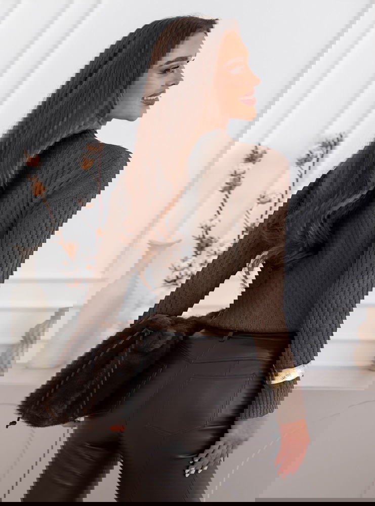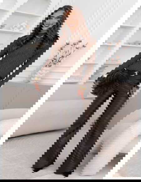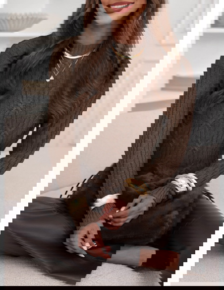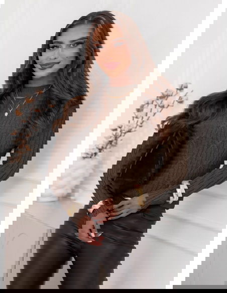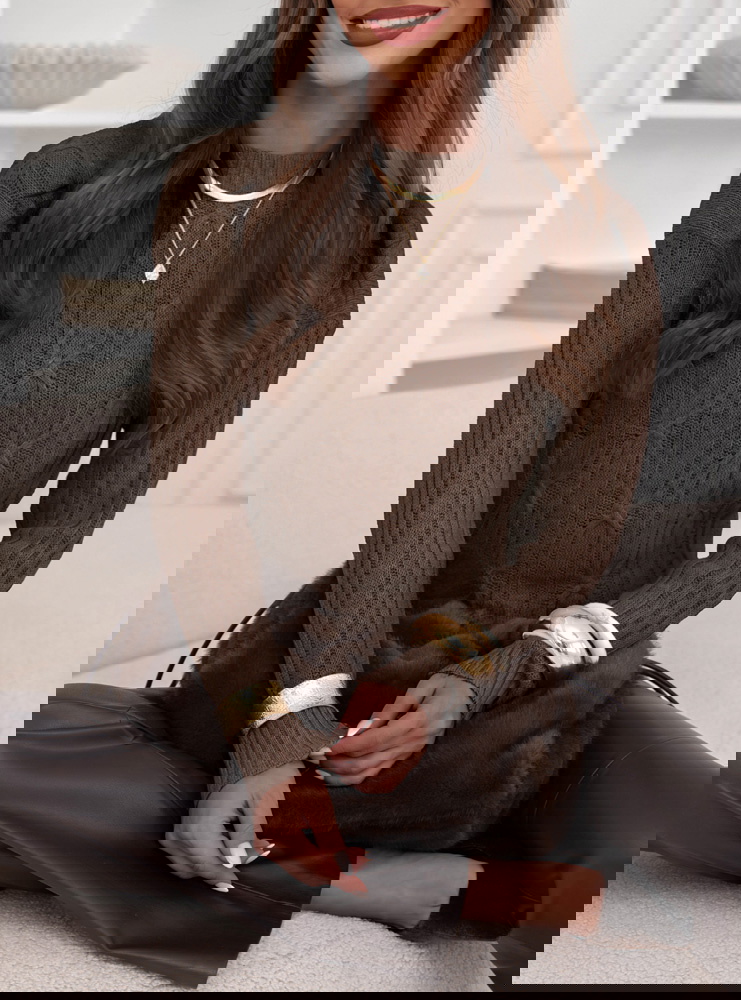 Czekoladowy dzianinowy sweter z delikatnym wzorem Clauroos