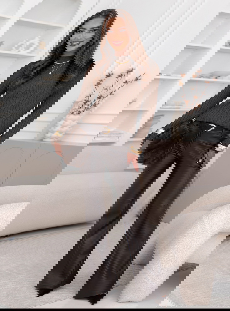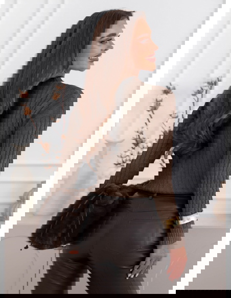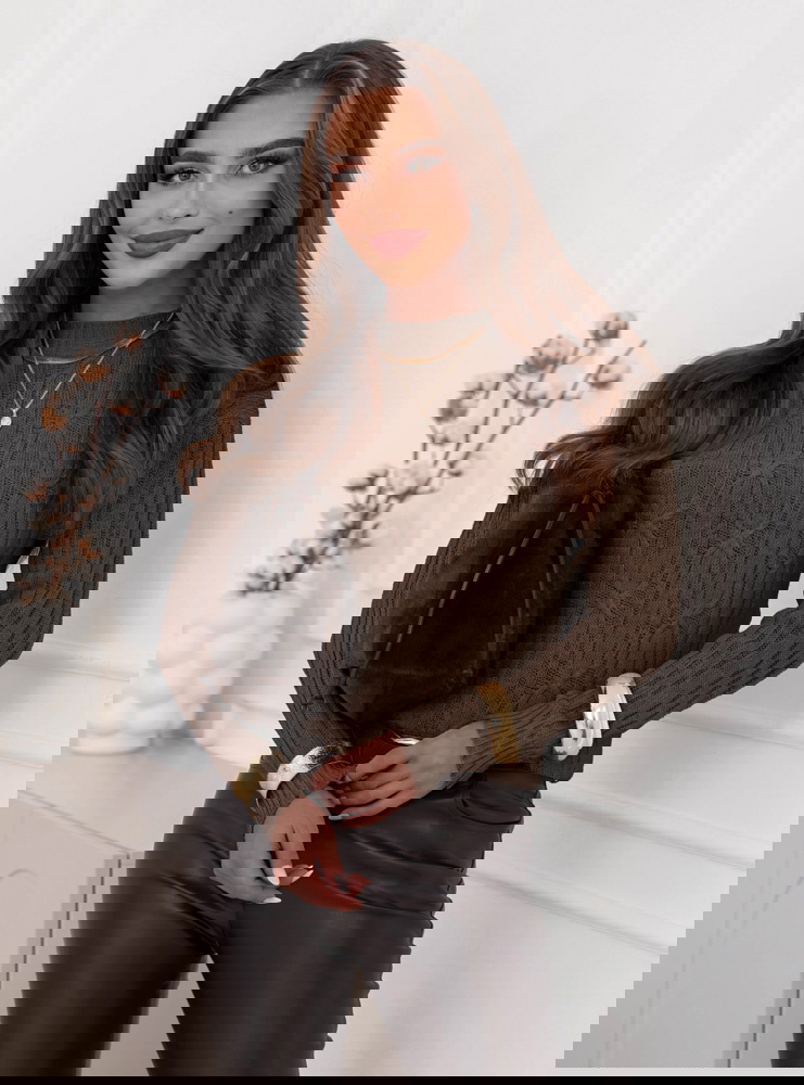 Czekoladowy dzianinowy sweter z delikatnym wzorem Clauroos to esencja jesiennego stylu w eleganckim, stonowanym wydaniu. Ciepły, głęboki odcień brązu wprowadza do stylizacji przytulny klimat i doskonale współgra z barwami sezonu. To model, który łączy subtelność i ponadczasową prostotę, dzięki czemu sprawdzi się w wielu codziennych zestawach. Delikatny wzór nadaje mu wyjątkowego charakteru, nie przytłaczając całości, a jedynie podkreślając jego wyjątkowość. Sweter pięknie układa się na sylwetce, tworząc kobiecy i harmonijny look. Idealnie wpisuje się w styl minimalistycznej elegancji, zachowując przy tym casualową lekkość. Dłuższy fason sprawia, że wygląda stylowo zarówno w duecie z jeansami, jak i bardziej dopasowanymi spodniami. To doskonała propozycja dla kobiet, które lubią klasykę w nowoczesnym wydaniu. W tym swetrze można poczuć się stylowo, komfortowo i pewnie niezależnie od okazji.