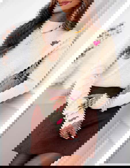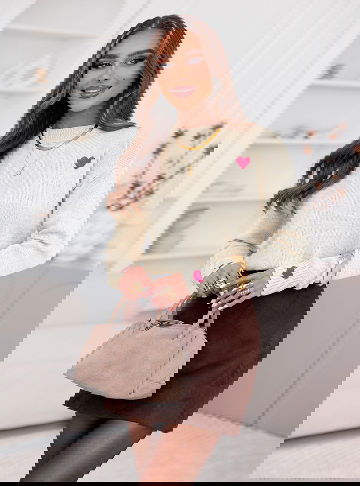 Sweter z serduszkami Mozelle - ecru to urocza propozycja, która łączy subtelność z odrobiną romantycznego wdzięku. Jego delikatny odcień ecru pięknie rozświetla cerę i nadaje stylizacji lekkości. Ma w sobie coś dziewczęcego, ale też eleganckiego – idealnie wpisuje się w klimat codziennych, jesiennych dni. Urocze serduszka dodają mu wyjątkowego charakteru, wprowadzając do stylizacji ciepły, pozytywny akcent. To model, który przyciąga uwagę drobnymi detalami, a jednocześnie pozostaje niezwykle uniwersalny. Doskonale sprawdzi się u kobiet, które lubią modę z nutą delikatności i świeżości. Możesz go nosić zarówno w zestawie z jeansami, jak i spódnicą, tworząc stylizację pełną wdzięku. Ten sweter to połączenie klasyki z nowoczesnym urokiem, idealne na każdą okazję.