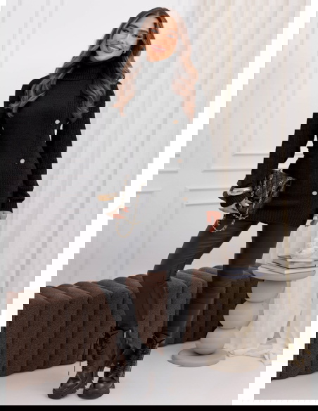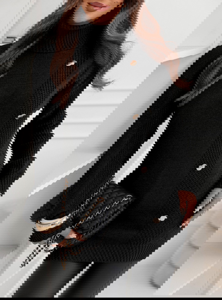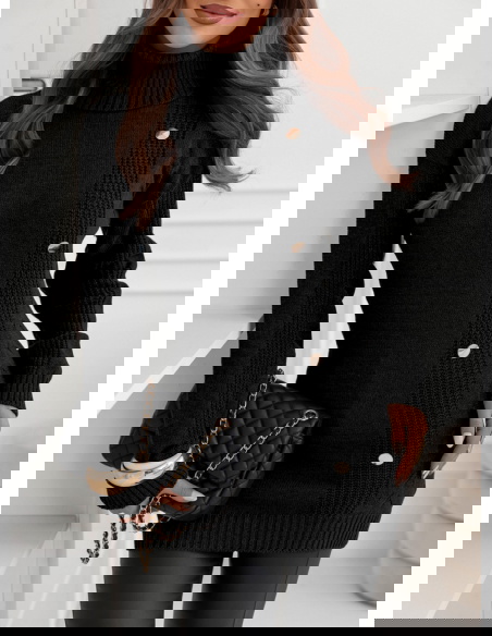 Czarny sweter z ozdobnymi guzikami Ernestinee