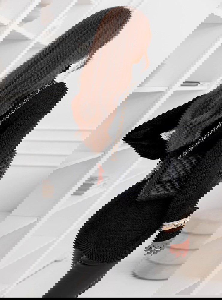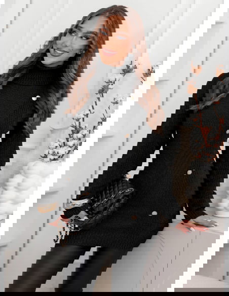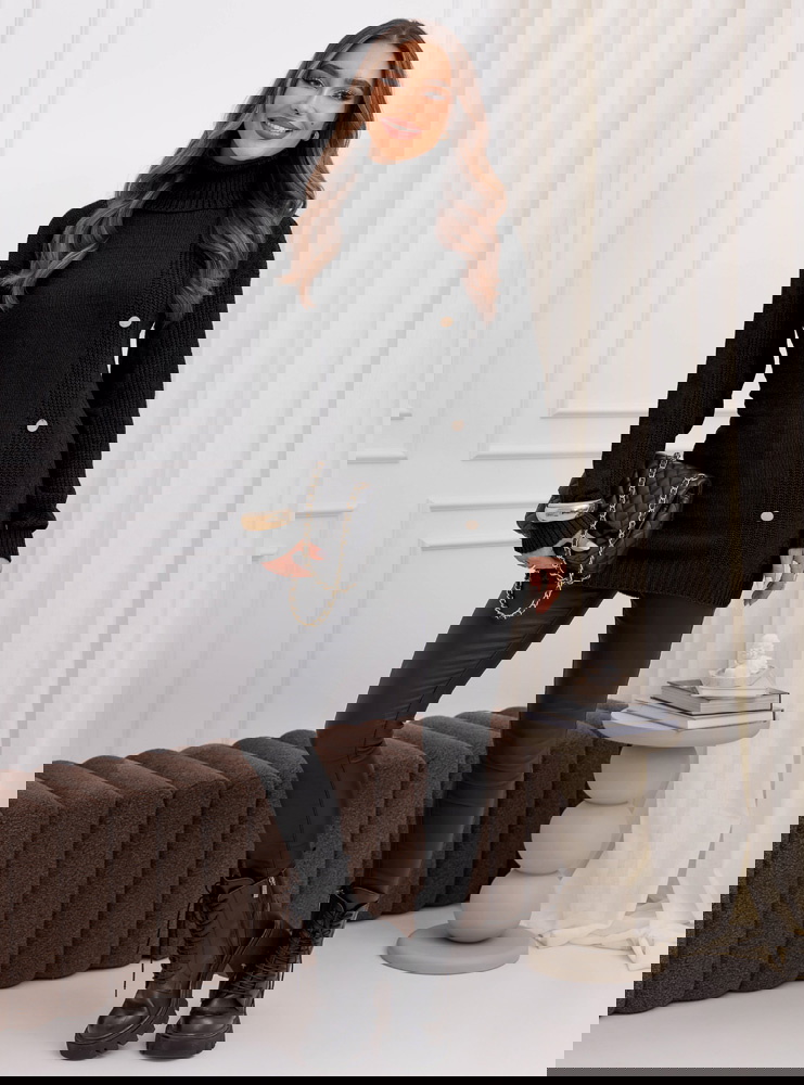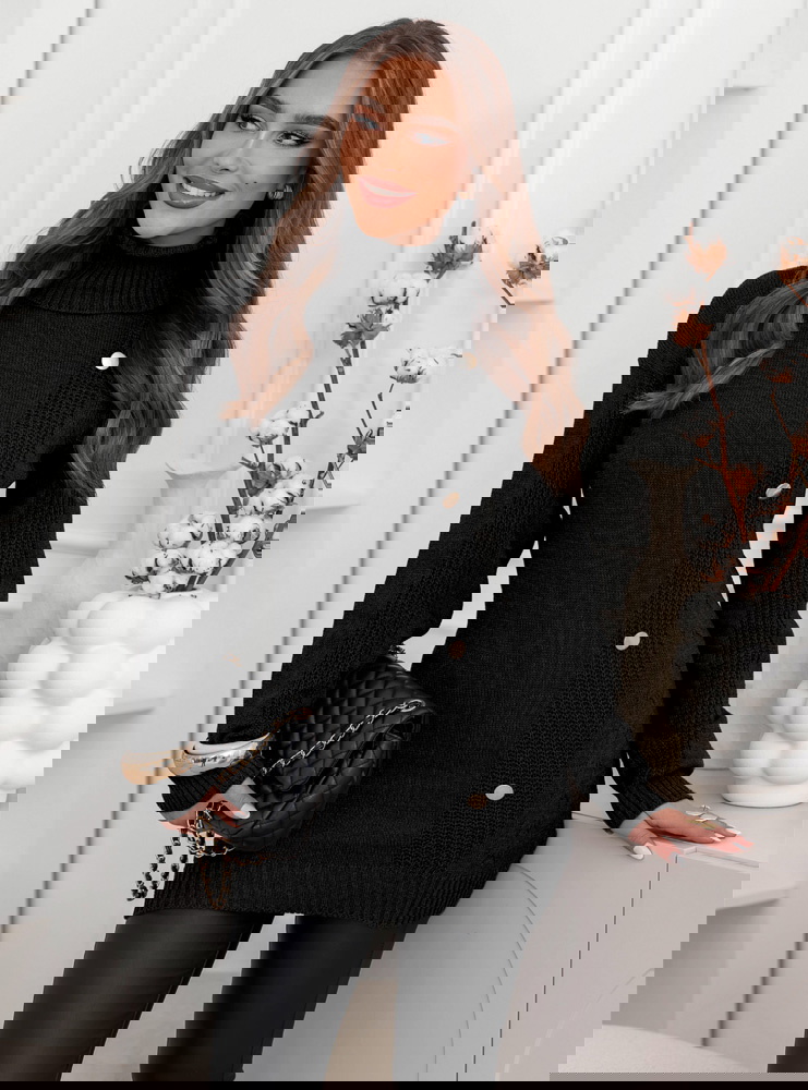 Czarny sweter z ozdobnymi guzikami Ernestinee to połączenie elegancji, klasy i subtelnej nowoczesności. Jego dopracowany krój sprawia, że prezentuje się niezwykle kobieco i stylowo. To model, który podkreśla sylwetkę, zachowując jednocześnie pełen komfort noszenia. Ozdobne guziki dodają mu wyjątkowego charakteru i stanowią delikatny, ale wyrazisty akcent. Czerń sprawia, że jest uniwersalny i ponadczasowy – idealny na każdą okazję. Sweter ten to propozycja dla kobiet, które lubią wyróżniać się w subtelny, elegancki sposób. Wysoki golf dodaje mu przytulności i jesiennego wdzięku, a całość prezentuje się niezwykle harmonijnie. To idealny wybór na chłodniejsze dni, kiedy chcesz wyglądać stylowo, ale bez przesadnego przepychu. Ten model zachwyca prostotą połączoną z eleganckim detalem. To sweter, który z łatwością stanie się ulubionym elementem jesiennej garderoby.