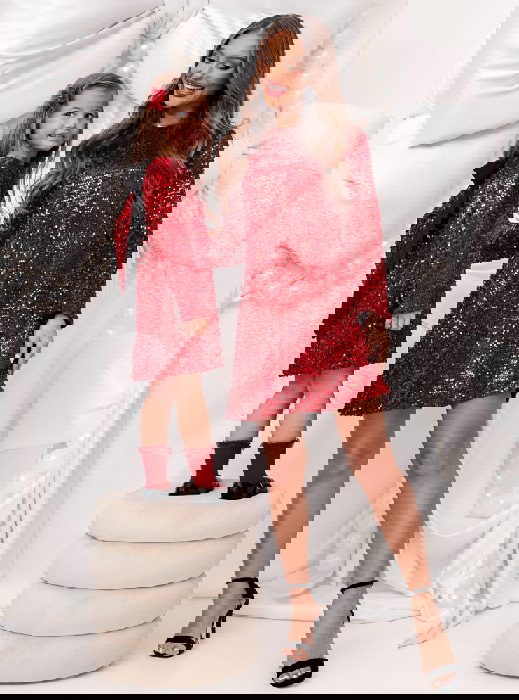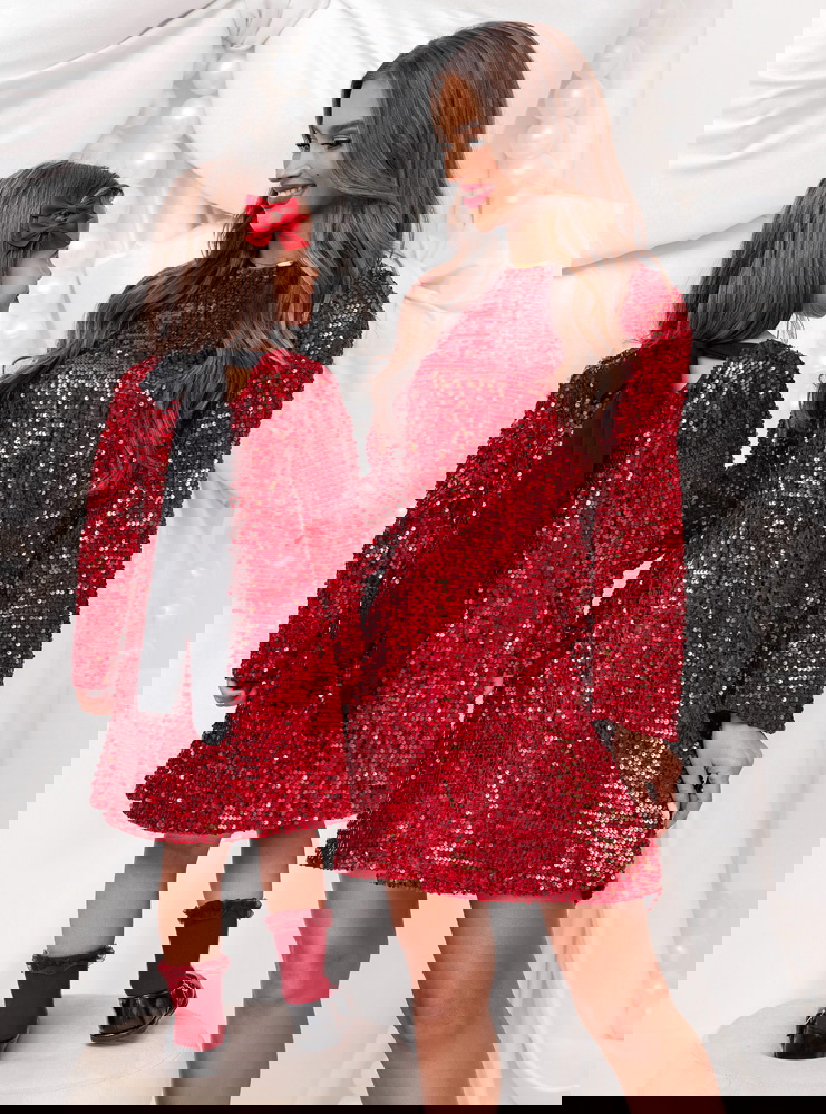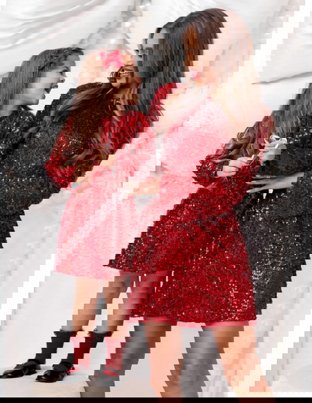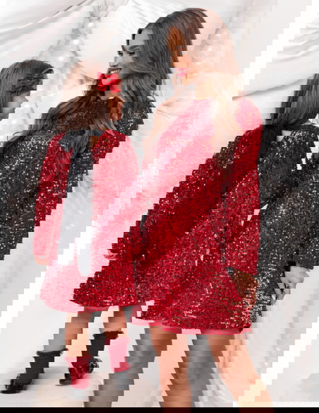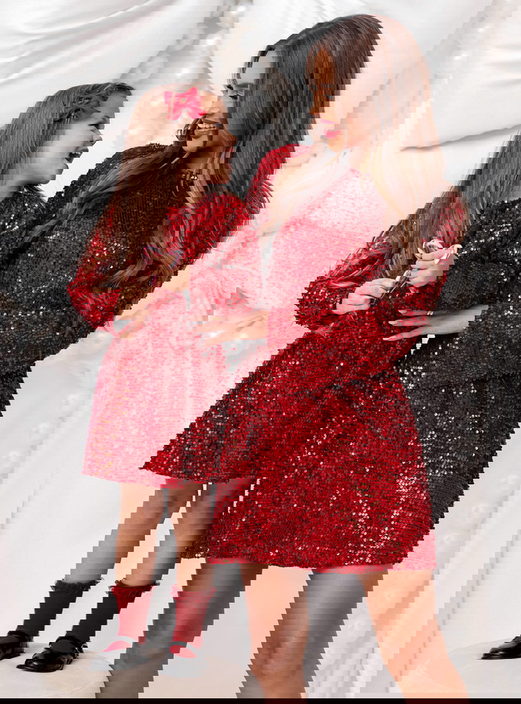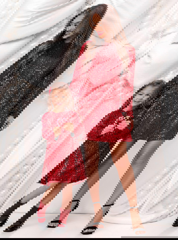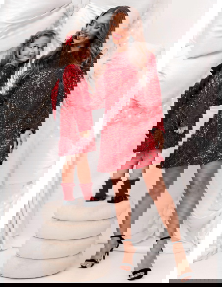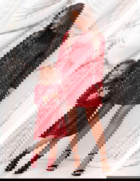 Malinowy zestaw cekinowych sukienek mama i córka Brailyn to kwintesencja rodzinnego stylu z nutą glamour. Pozwala mamie i córce lśnić razem, tworząc niezapomniany duet pełen elegancji i radości. To propozycja, która łączy modny wygląd z wyjątkowym przesłaniem – celebracją więzi i wspólnych emocji.