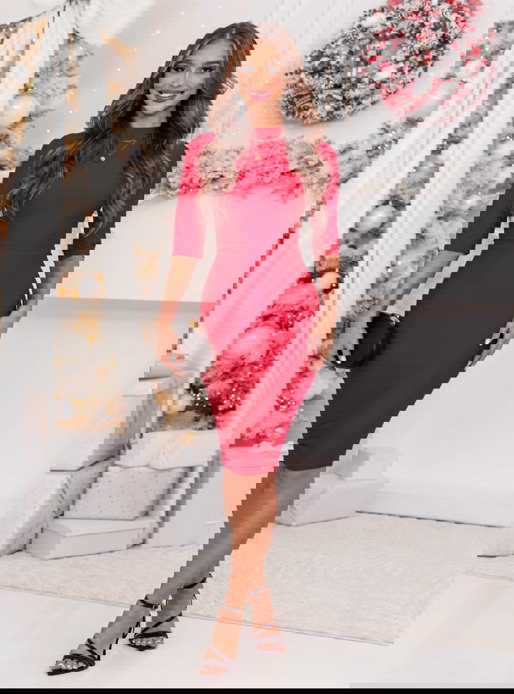 Malinowa dopasowana sukienka midi Patricee to propozycja, która zachwyca swoją elegancją i kobiecym wdziękiem. Jej klasyczny krój w połączeniu z intensywnym kolorem tworzy niezwykle efektowny duet. To model, który przyciąga spojrzenia i podkreśla pewność siebie. Doskonale wpisuje się w klimat świątecznych spotkań, kiedy liczy się styl, szyk i odrobina blasku. Dopasowany fason pięknie modeluje sylwetkę, podkreślając jej naturalne kształty. Prosty, ale wyrazisty design sprawia, że sukienka nie potrzebuje wielu dodatków, by wyglądać olśniewająco. Wystarczy delikatna biżuteria i klasyczne szpilki, aby stworzyć kompletną, elegancką stylizację. To kreacja, w której każda kobieta poczuje się wyjątkowo i kobieco. Jej długość midi dodaje klasy, a półrękaw zapewnia wygodę i subtelną elegancję. To idealna propozycja na chłodniejsze, zimowe dni pełne spotkań i ciepłej atmosfery.