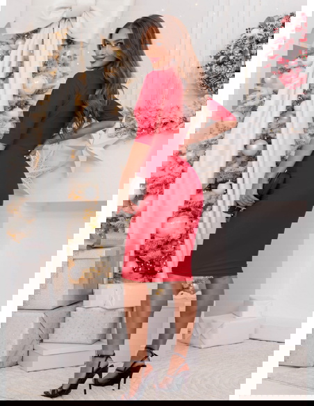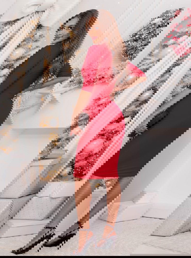 Malinowa dopasowana świąteczna sukienka midi Patricee