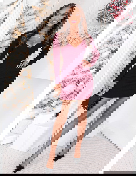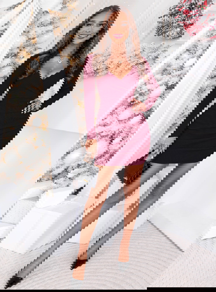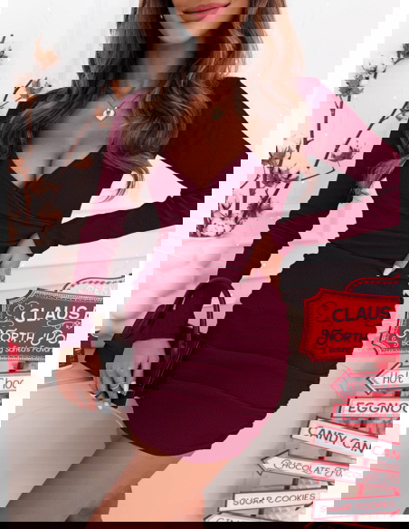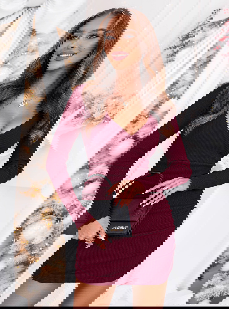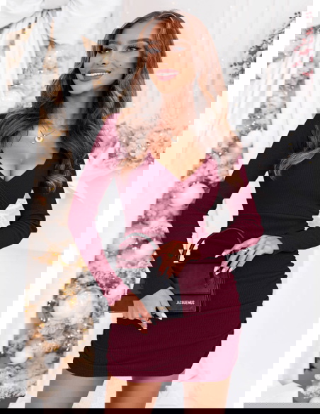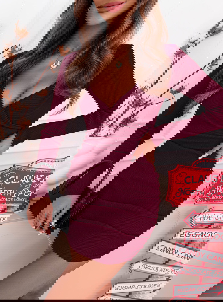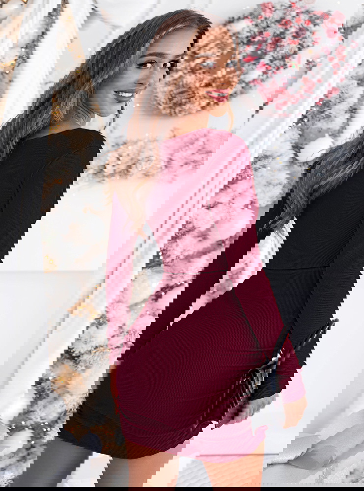 Bordowa prążkowana sukienka z przekładanym dekoltem Gabreilla to kwintesencja kobiecości w eleganckim, świątecznym wydaniu. Jej dopasowany fason pięknie podkreśla sylwetkę, dodając pewności siebie i subtelnego uroku. Głęboki, ale gustowny dekolt typu kopertowego przyciąga wzrok i delikatnie eksponuje szyję oraz obojczyki. To model, który łączy klasykę z nowoczesnym akcentem, tworząc idealną równowagę między zmysłowością a elegancją. Intensywny odcień bordo doskonale wpisuje się w jesienno-zimowy klimat, podkreślając wyjątkowy charakter stylizacji. Sukienka zachwyca prostotą, która nie potrzebuje nadmiaru dodatków. Wystarczy elegancka torebka i biżuteria, aby stworzyć pełny, wyrafinowany look. To propozycja dla kobiet, które lubią wyglądać stylowo, ale z nutą romantycznego ciepła. Jej długość mini dodaje lekkości i sprawia, że całość prezentuje się niezwykle kobieco. To sukienka, w której każda chwila nabiera wyjątkowego blasku.