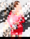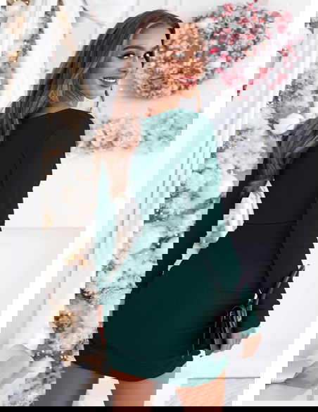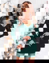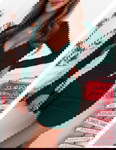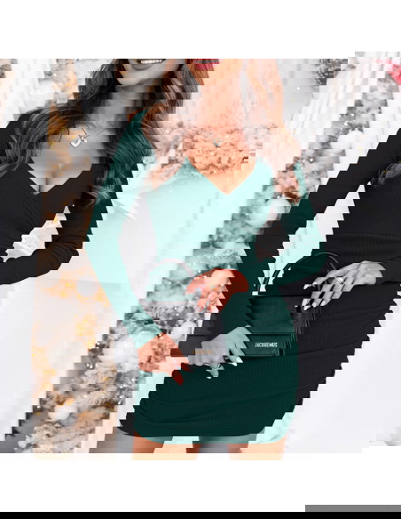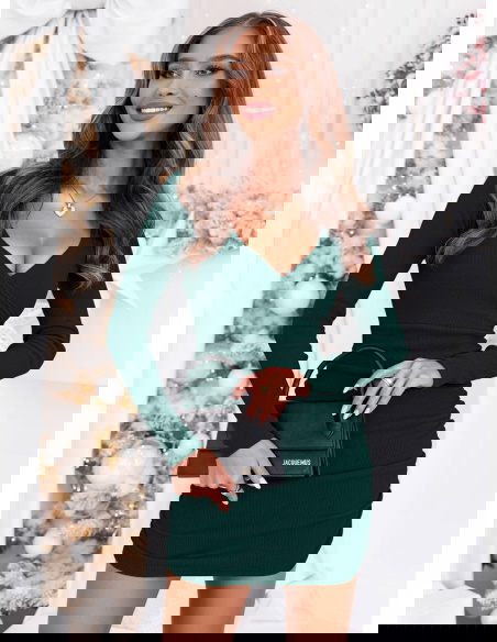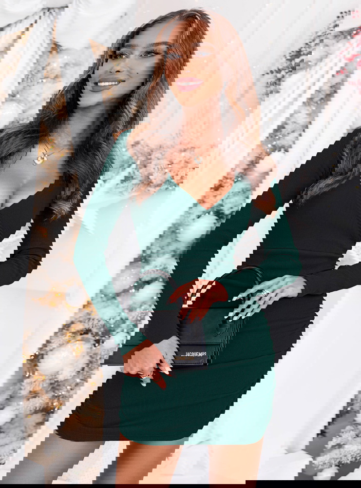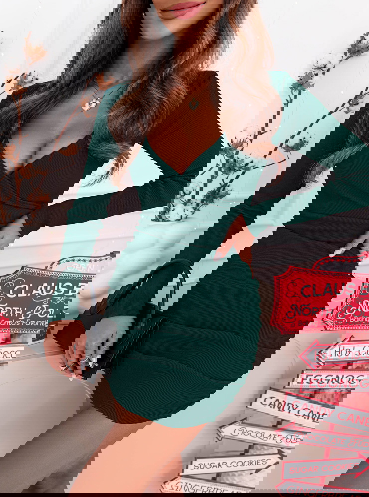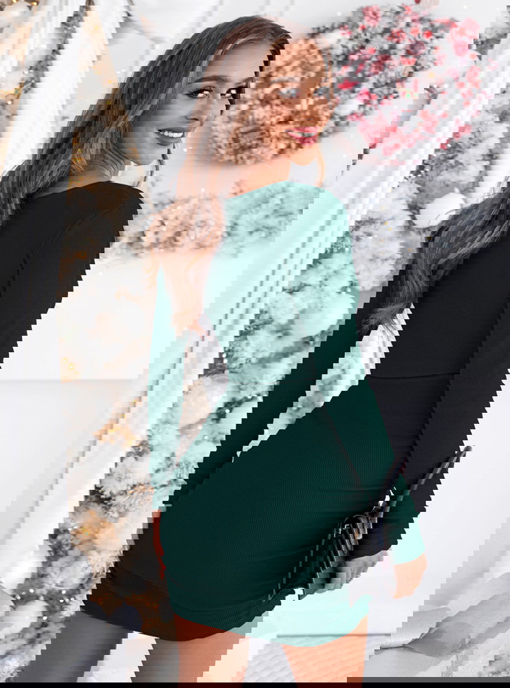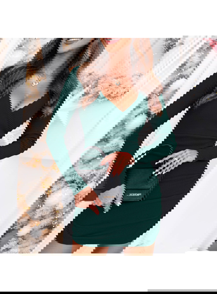 Prążkowana sukienka na święta z przekładanym dekoltem Gabreilla - butelkowa zieleń