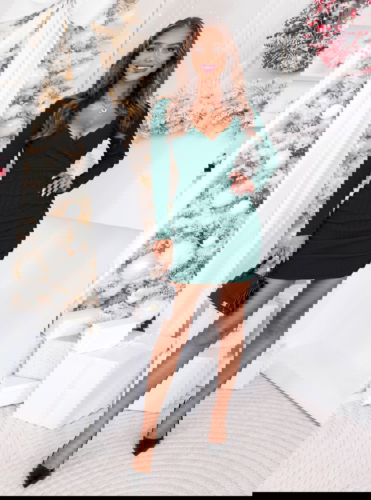 Prążkowana sukienka z przekładanym dekoltem Gabreilla - butelkowa zieleń to idealny balans między wygodą a elegancją. Jej dopasowany krój i prążkowana struktura sprawiają, że prezentuje się wyjątkowo stylowo i kobieco.