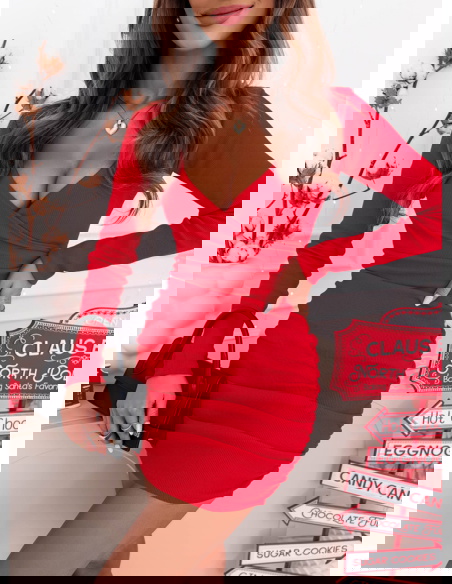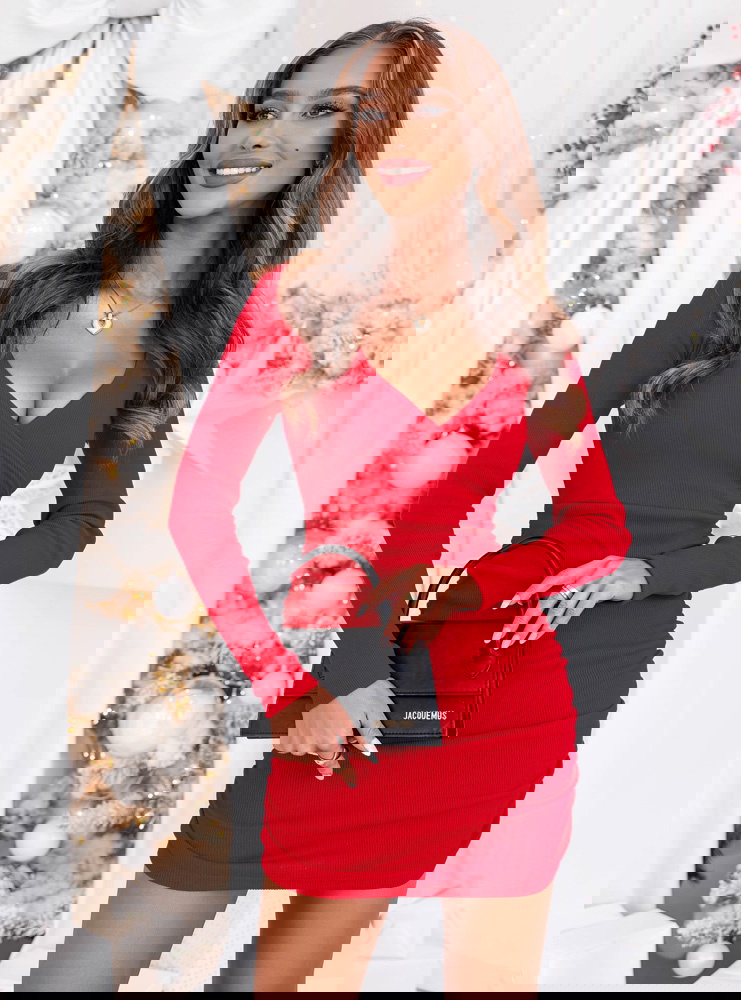 Malinowa prążkowana sukienka z przekładanym dekoltem Gabreilla sprawdzi się idealnie podczas świątecznych kolacji, rodzinnych spotkań czy zimowych przyjęć. Doskonale wygląda również podczas randki, wieczornego wyjścia lub spotkania z przyjaciółkami.