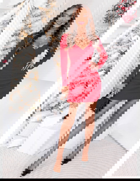Malinowa prążkowana sukienka z przekładanym dekoltem Gabreilla to kwintesencja kobiecości, elegancji i świątecznego uroku. Jej intensywny kolor przyciąga spojrzenia i dodaje pewności siebie, a dopasowany fason pięknie podkreśla sylwetkę. Przekładany dekolt nadaje całości subtelnego wdzięku, jednocześnie pozostając niezwykle szykownym. To sukienka, która łączy w sobie delikatność i wyrazistość, idealnie wpisując się w klimat zimowych spotkań. Długie rękawy nadają jej harmonii i eleganckiego wykończenia, a delikatne marszczenia po bokach sprawiają, że sylwetka wygląda wyjątkowo kobieco. To propozycja dla kobiet, które cenią styl i klasę w każdej sytuacji. W tej sukience można poczuć się zarówno elegancko, jak i swobodnie. Jej prosty, ale efektowny krój sprawia, że nie potrzebuje wielu dodatków, by wyglądać zjawiskowo. To model, który idealnie podkreśli magię świątecznego sezonu i wyjątkowych chwil.