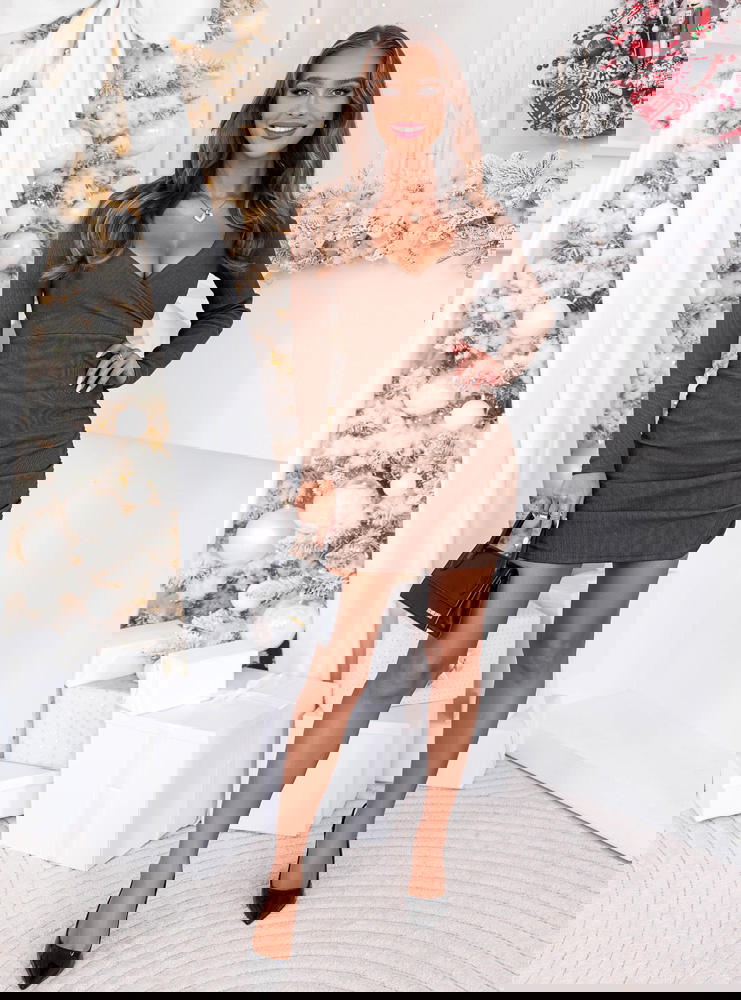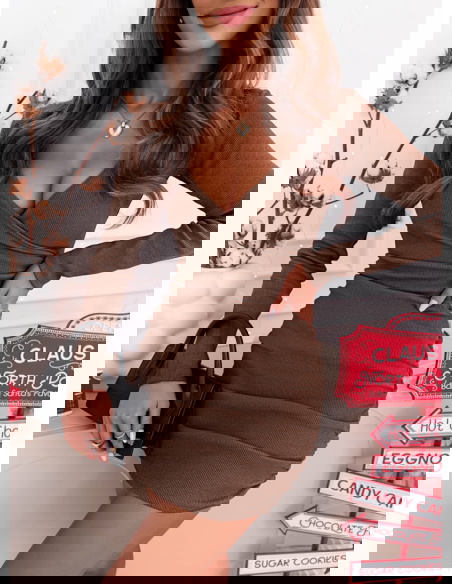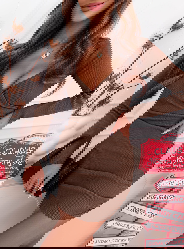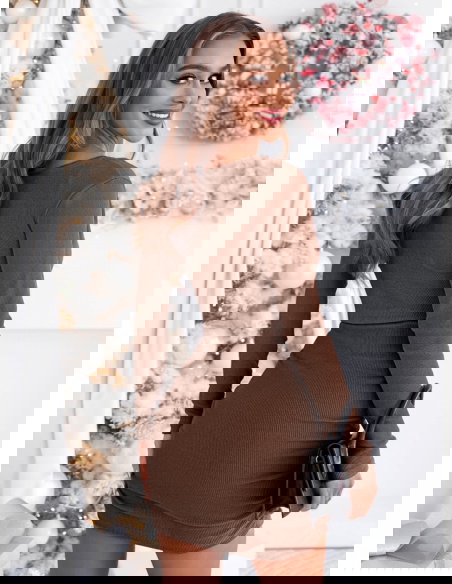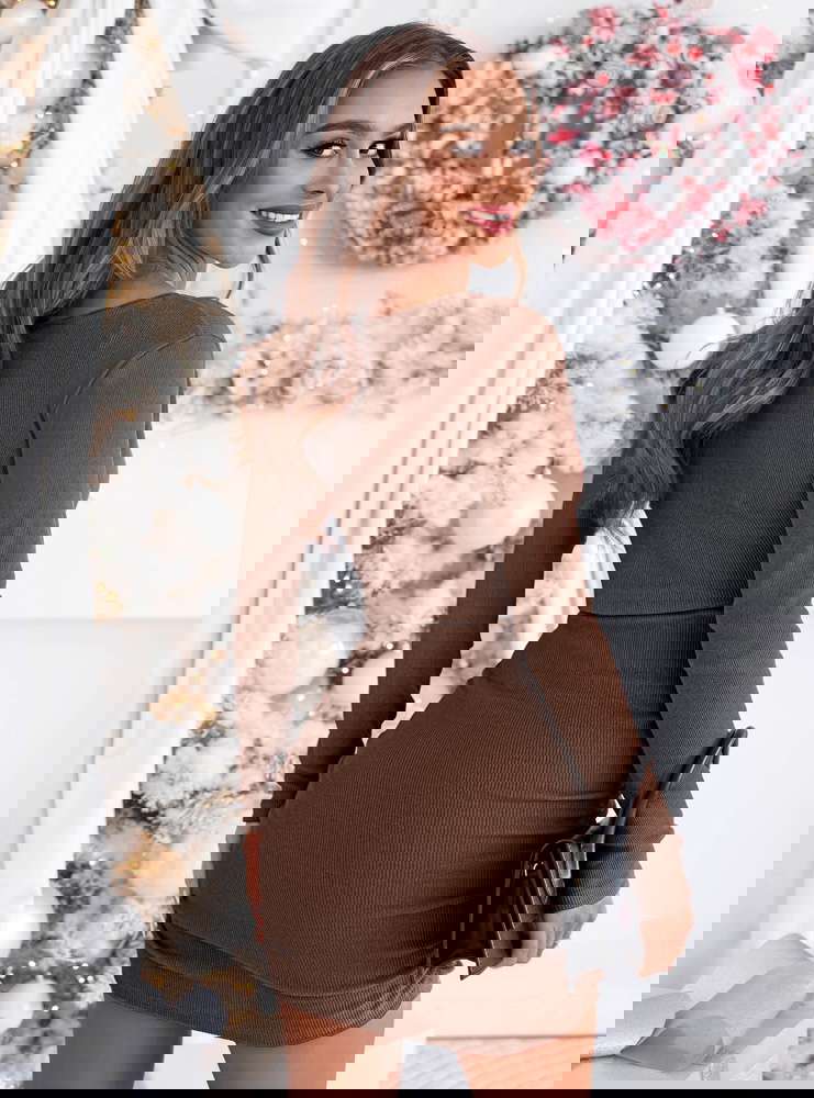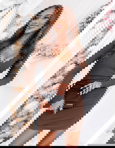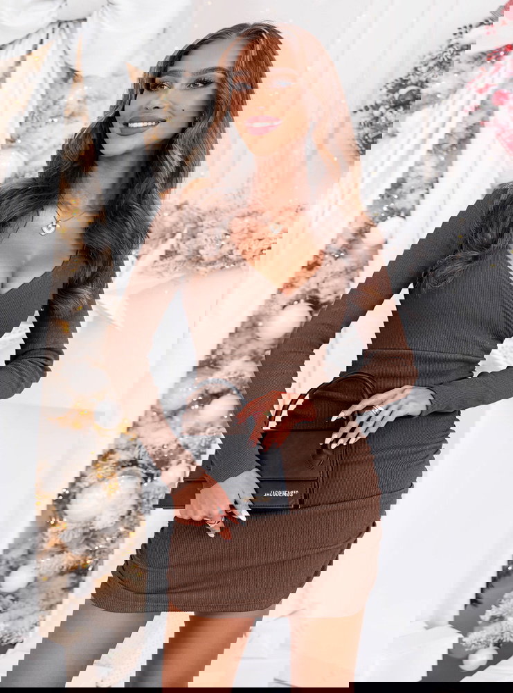 Prążkowana sukienka z przekładanym dekoltem Gabreilla - mocha mousse to połączenie klasy, prostoty i subtelnej elegancji. Jej odcień mocha mousse idealnie wpisuje się w ciepłe, zimowe stylizacje, dodając im wyjątkowego charakteru.