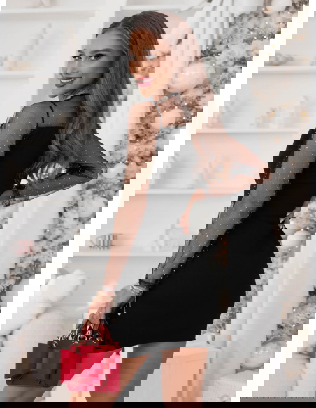 Czarna świąteczna sukienka z tiulowymi rękawami Merianis -