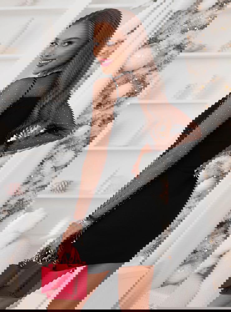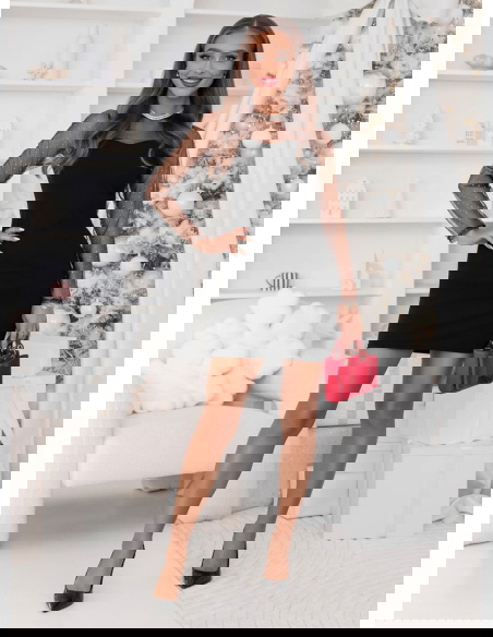 Czarna sukienka z tiulowymi rękawami Merianis to połączenie klasyki, elegancji i subtelnego uroku. To model, który przyciąga spojrzenia swoją prostotą, a jednocześnie zachwyca wyjątkowymi detalami. Delikatne, przezroczyste rękawy z tiulu nadają całości lekkości i romantycznego charakteru. Czerń w tym wydaniu jest ponadczasowa i niezwykle szykowna – doskonała na sezon jesienno-zimowy. To sukienka, w której każda kobieta poczuje się wyjątkowo, niezależnie od okazji. Jej krój pięknie podkreśla figurę, zachowując przy tym elegancki balans między zmysłowością a klasą. Idealna dla kobiet, które lubią wyróżniać się w subtelny sposób. To kreacja, która sprawdzi się zarówno podczas świątecznych spotkań, jak i wieczornych przyjęć. Każdy szczegół został zaprojektowany tak, aby tworzyć harmonijną, stylową całość. To propozycja, która nigdy nie wychodzi z mody i zawsze wygląda olśniewająco.
