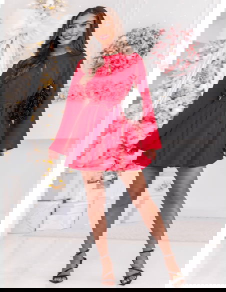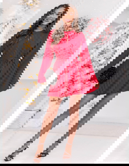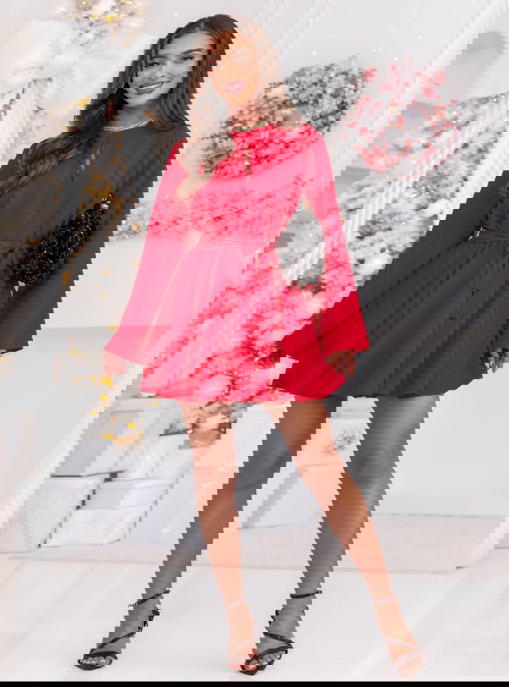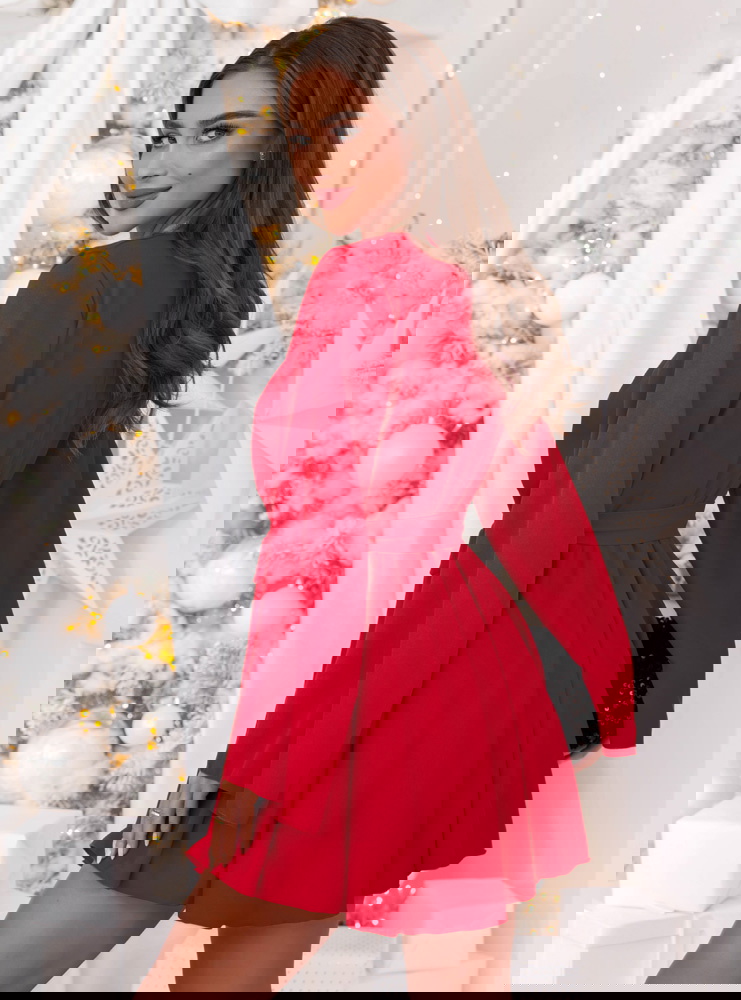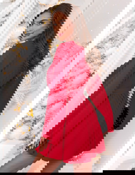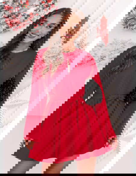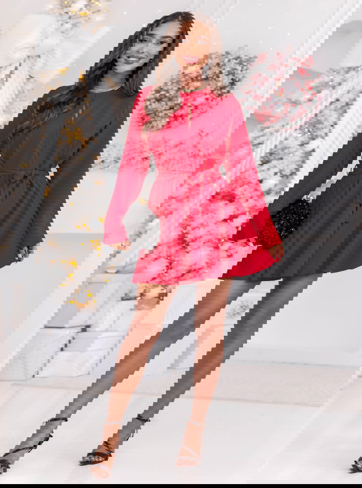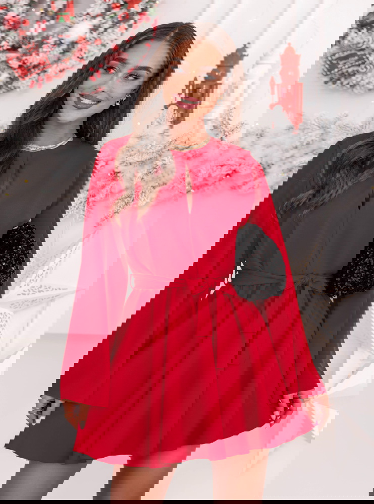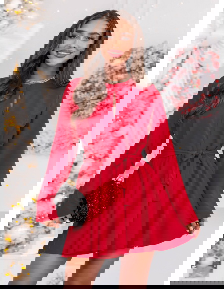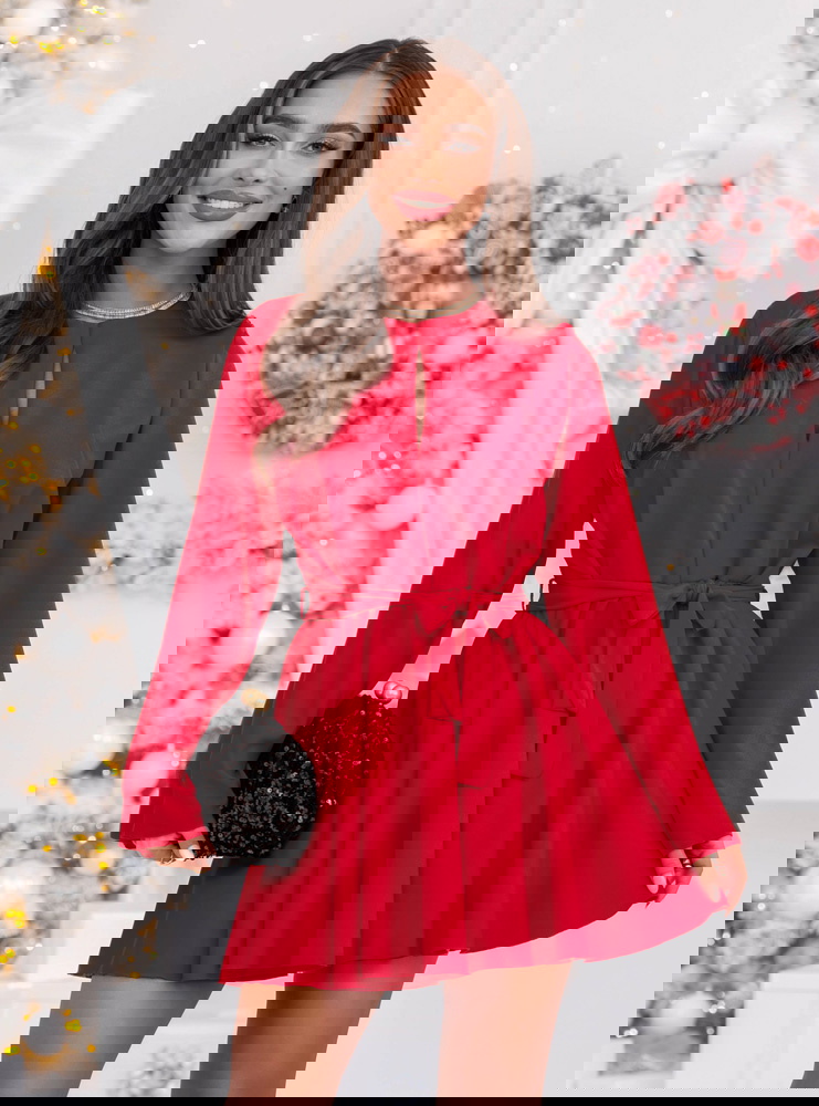 Malinowy świąteczny kombinezon jak sukienka wiązany w talii Lateisha