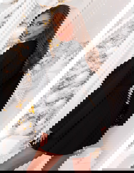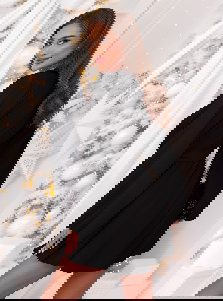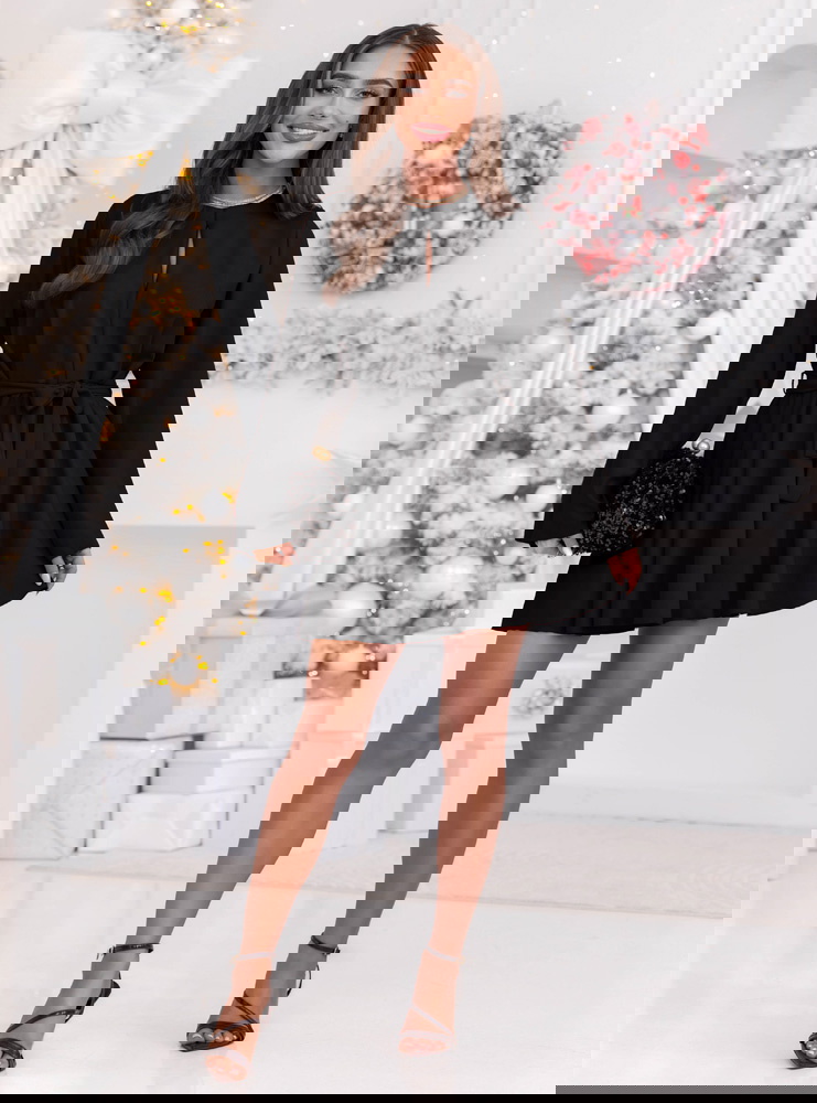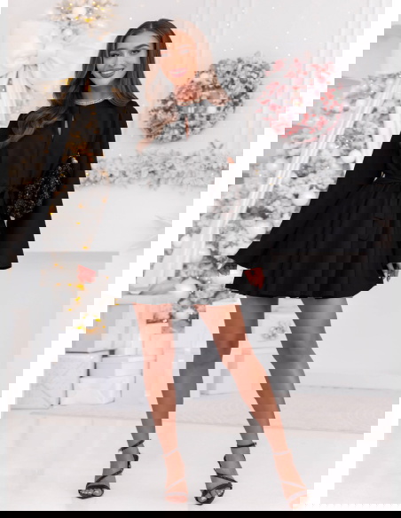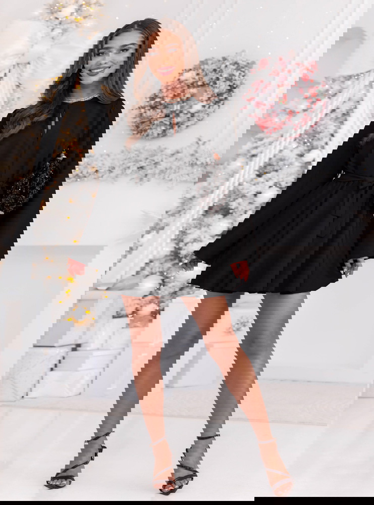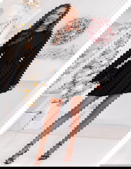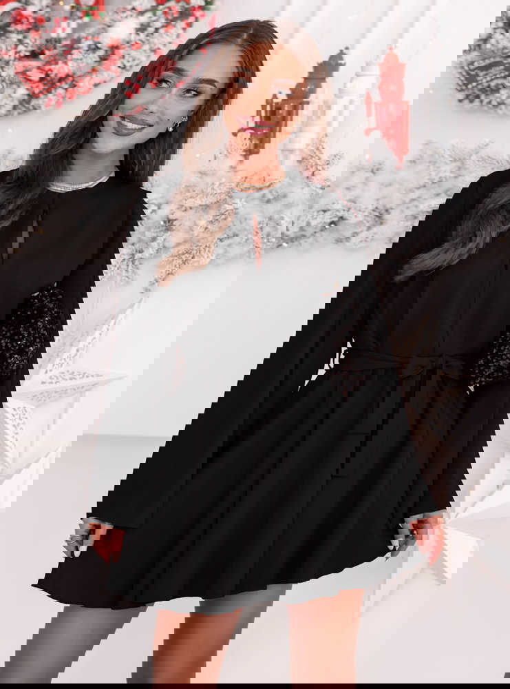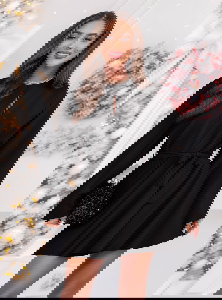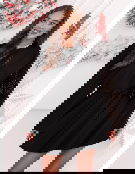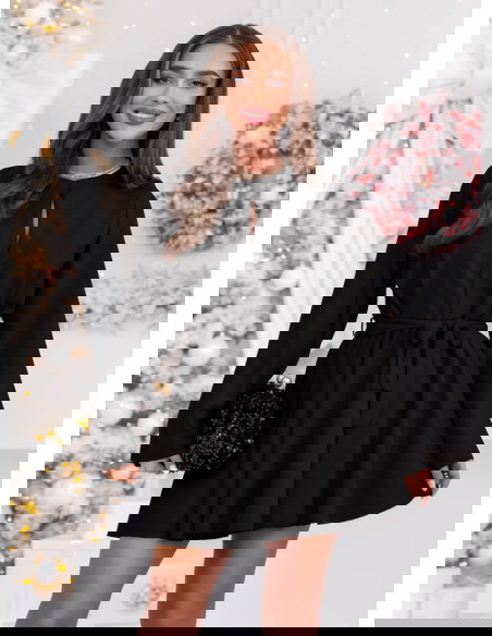 Czarny świąteczny kombinezon jak sukienka wiązany w talii Lateisha