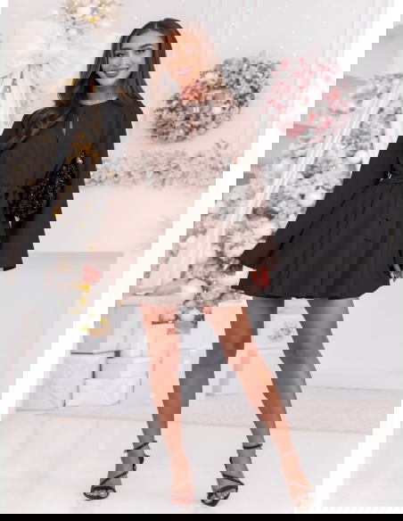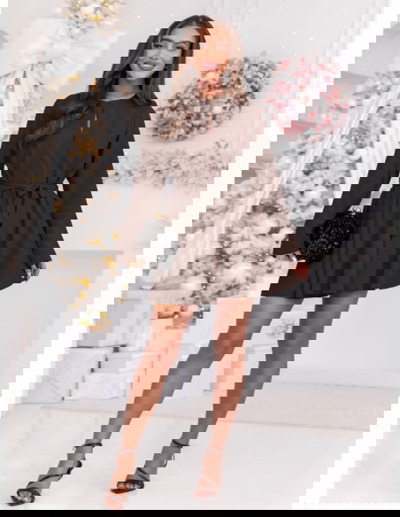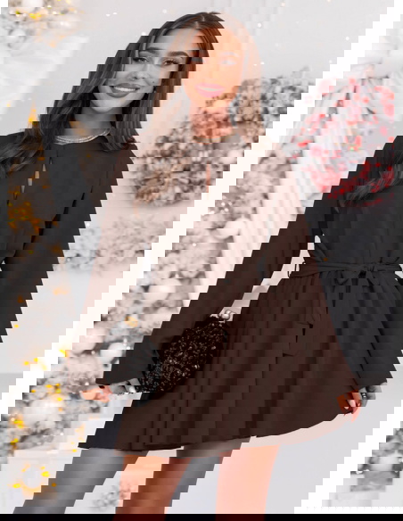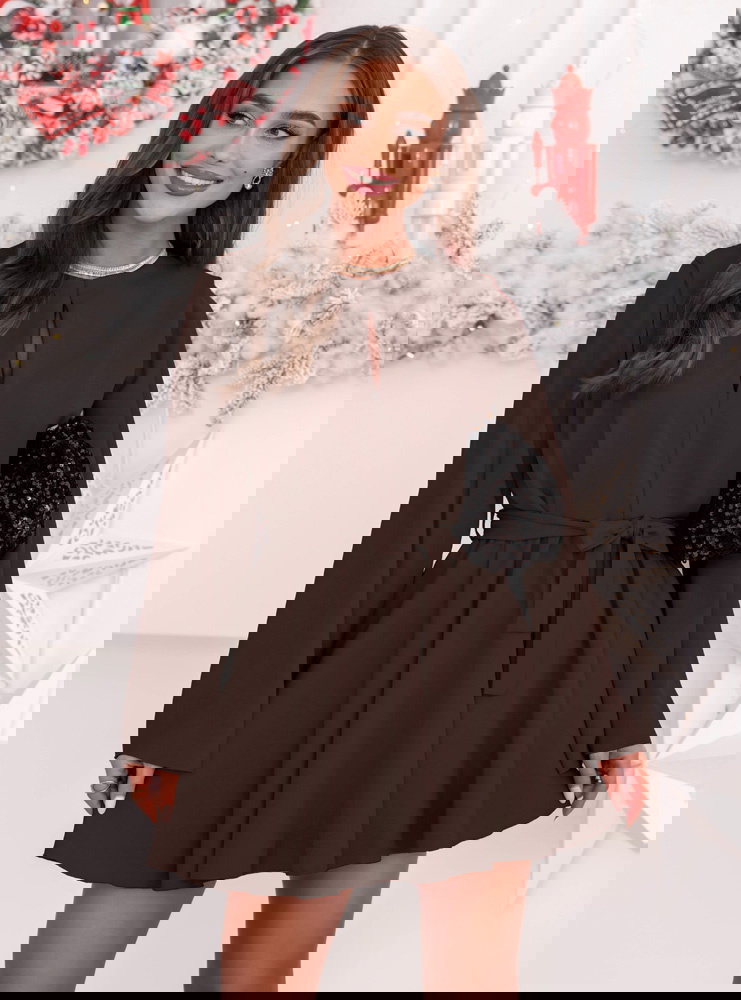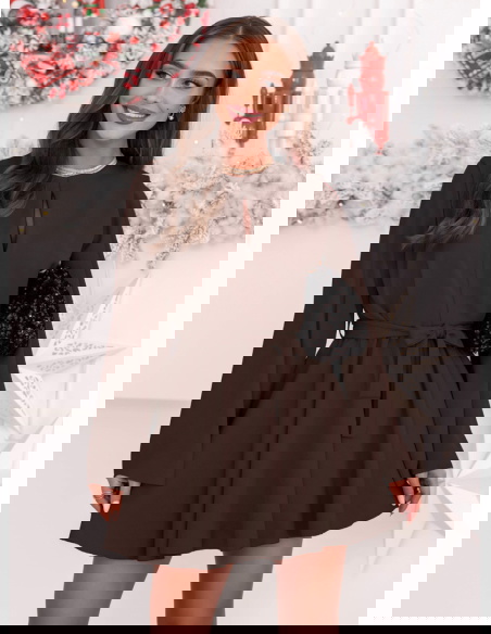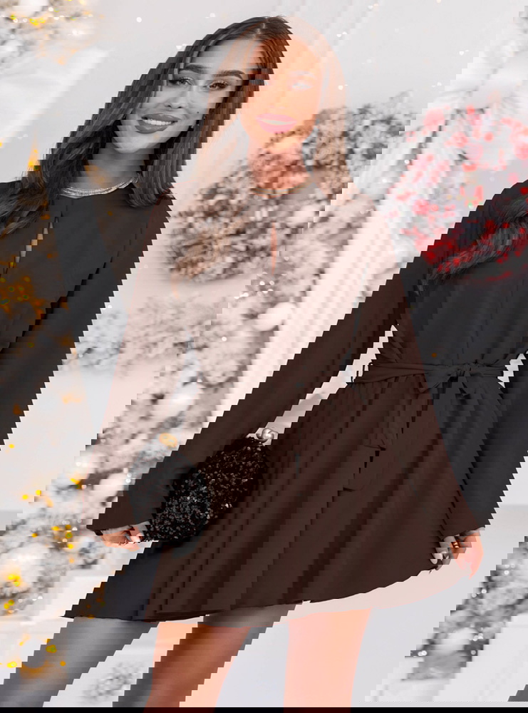 Czekoladowy świąteczny kombinezon jak sukienka wiązany w talii Lateisha