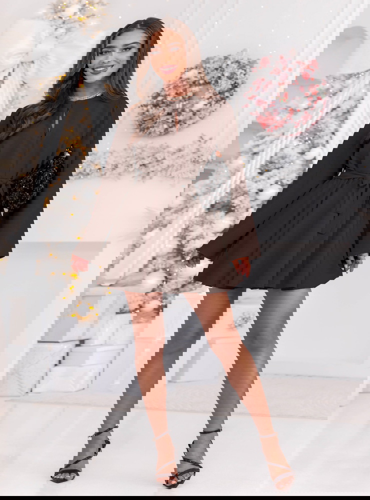 Czekoladowy świąteczny kombinezon jak sukienka wiązany w talii Lateisha sprawdzi się doskonale na wiele okazji – od eleganckiego spotkania po rodzinny obiad. Będzie idealny na świąteczne przyjęcia, uroczystości czy randki w chłodniejsze dni.