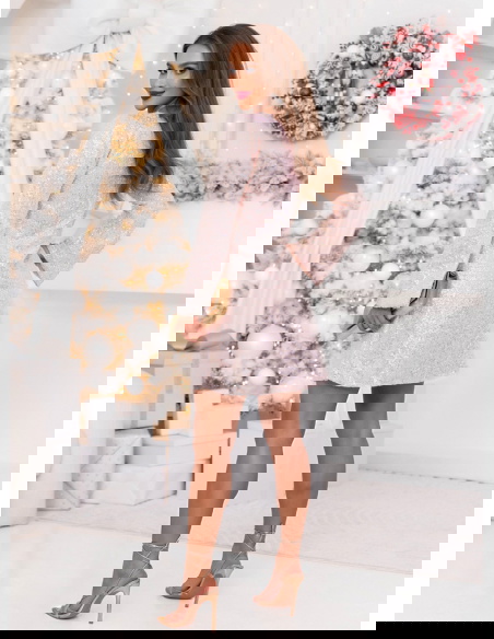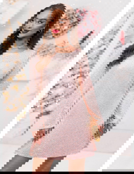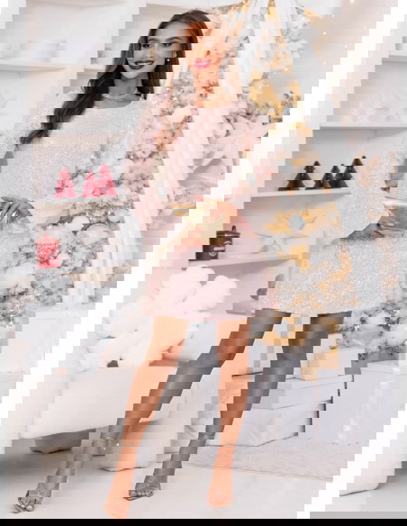 Pudrowa cekinowa sukienka mini na święta Denan -