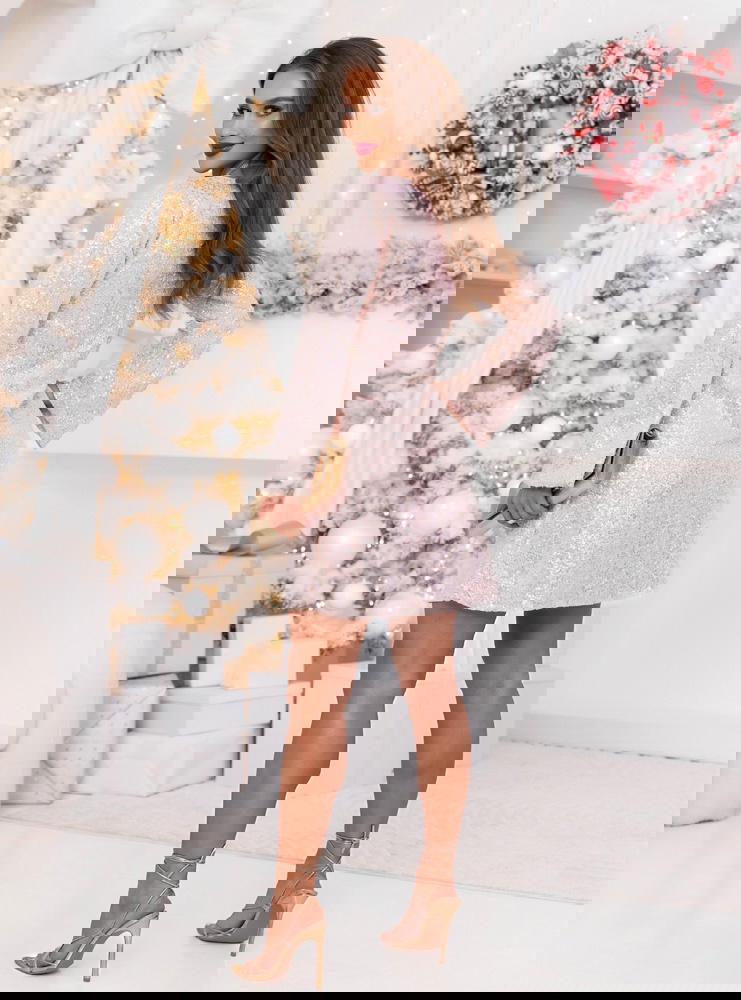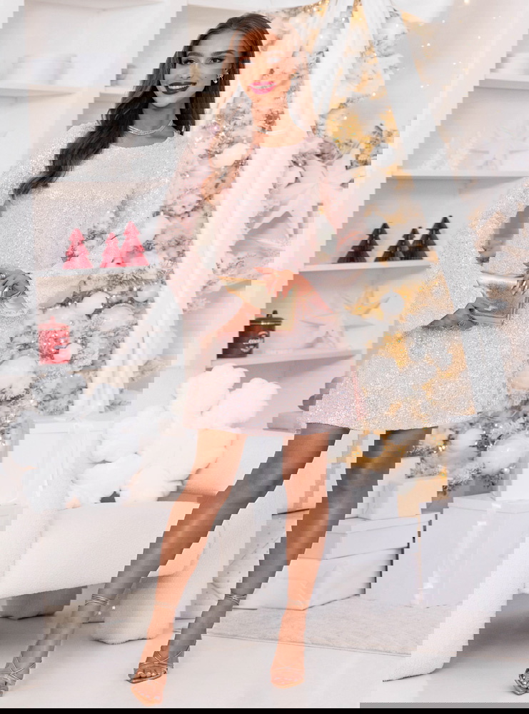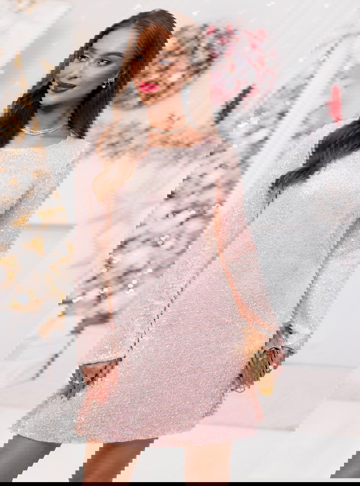 Pudrowa cekinowa sukienka mini Denan to idealny wybór na świąteczne kolacje, sylwestrowe przyjęcia i zimowe uroczystości. Świetnie sprawdzi się również na romantyczną randkę czy elegancki wieczór z przyjaciółmi.