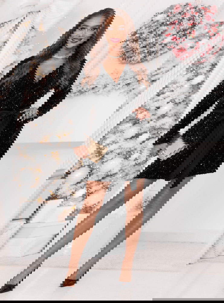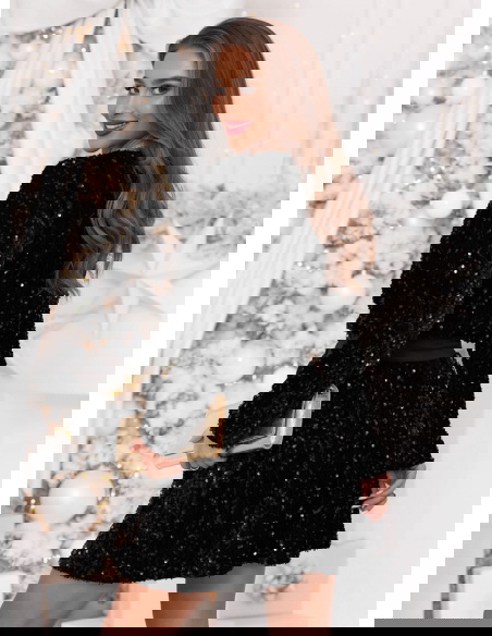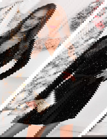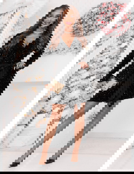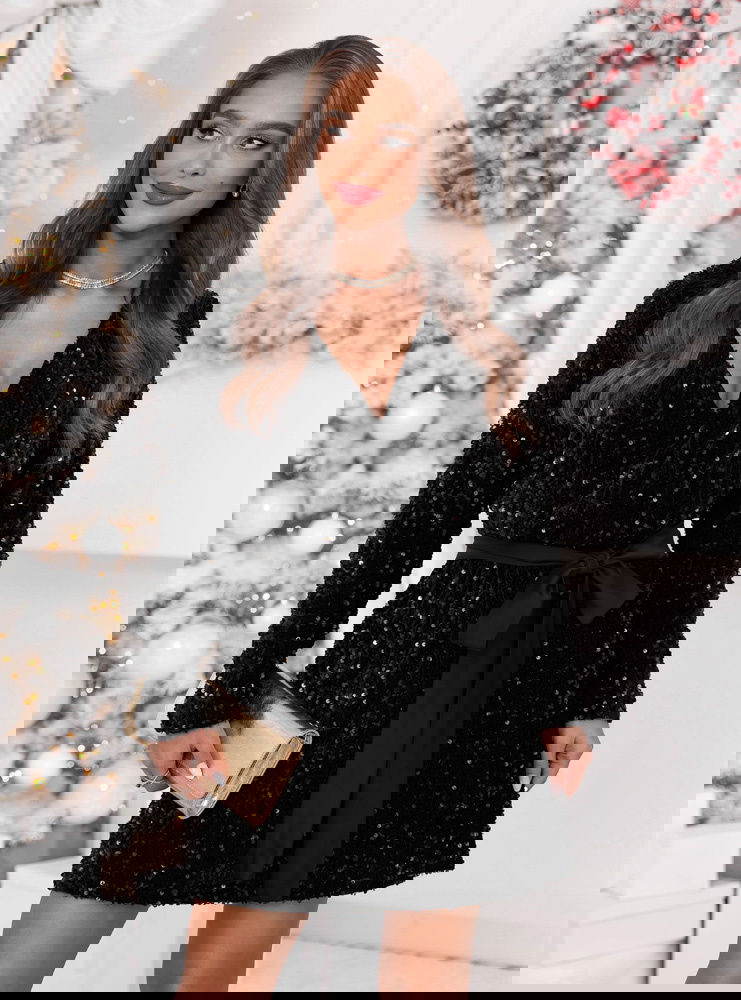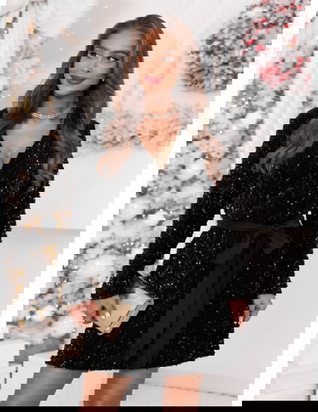 Czarna świąteczna cekinowa sukienka z wiązaniem Kateline