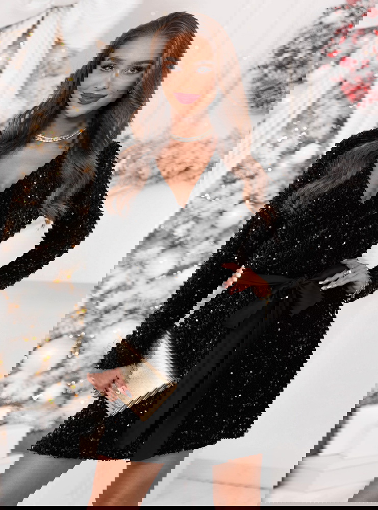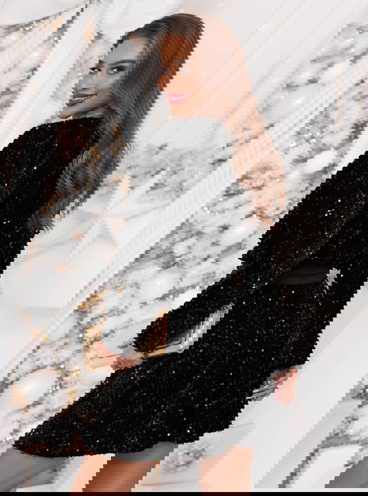 Czarna cekinowa sukienka z wiązaniem Kateline to synonim elegancji i wieczorowego szyku w najlepszym wydaniu. Jej lśniąca powierzchnia pięknie odbija światło, tworząc efekt, który przyciąga spojrzenia. To kreacja, która sprawia, że każda kobieta może poczuć się wyjątkowo i z klasą. Dopasowany krój subtelnie podkreśla sylwetkę, a rozkloszowany dół dodaje lekkości i kobiecego wdzięku. Wiązanie w talii z delikatną kokardą nadaje całości romantycznego charakteru. To idealna propozycja na sezon świąteczno-zimowy, kiedy blask i elegancja idą w parze. Długie rękawy zapewniają balans, dzięki czemu całość wygląda stylowo i harmonijnie. To sukienka, która zachwyca zarówno prostotą, jak i detalem. Wystarczy dobrać klasyczne dodatki, by stworzyć stylizację, która olśniewa przy każdej okazji.