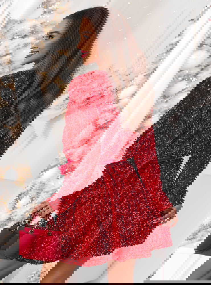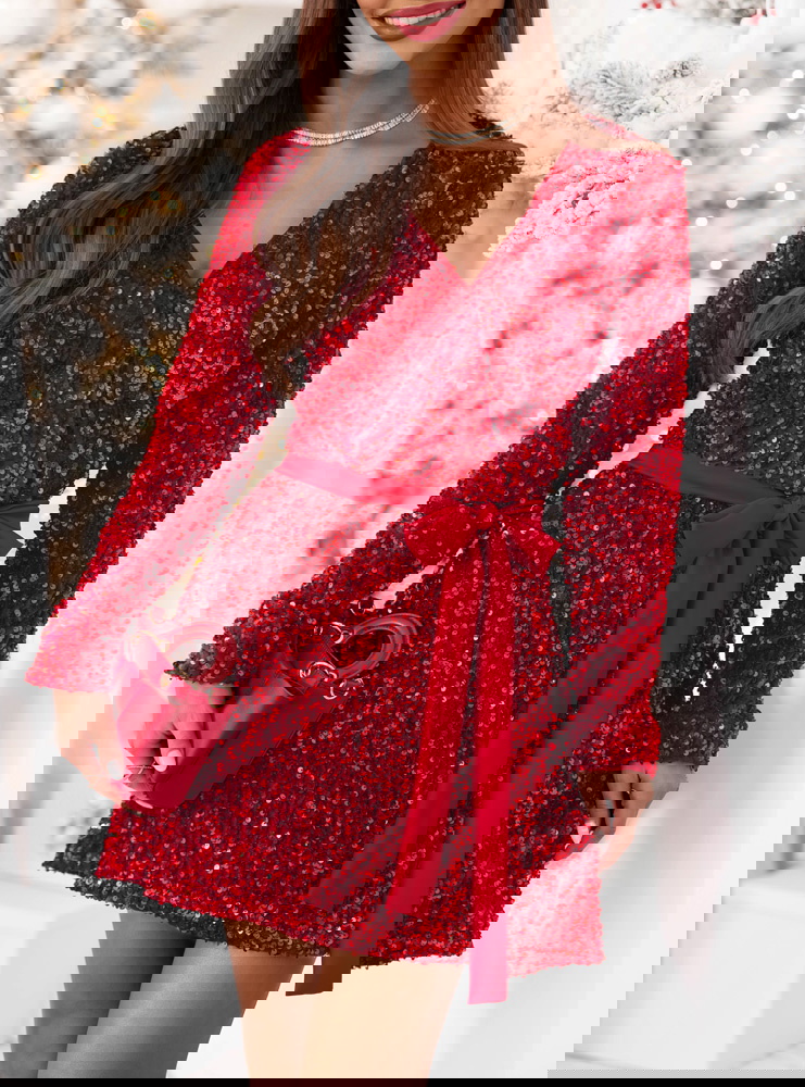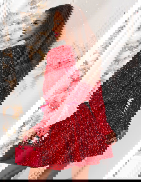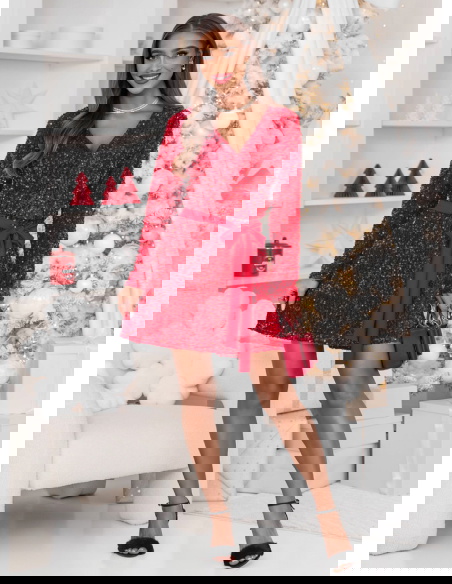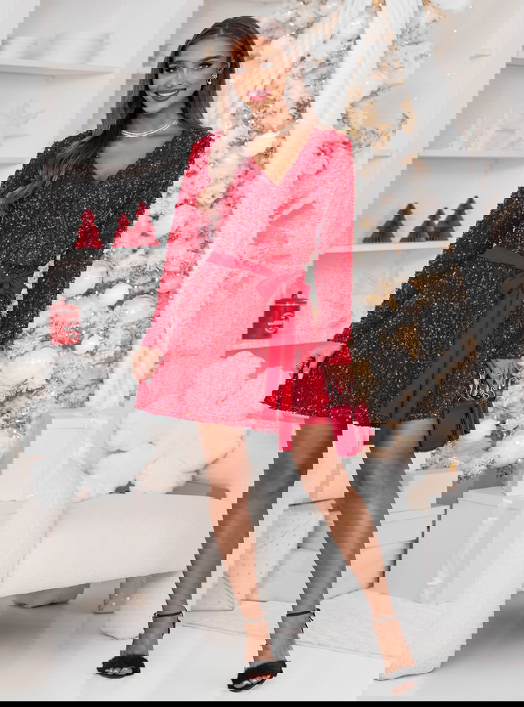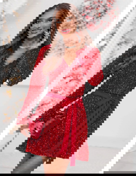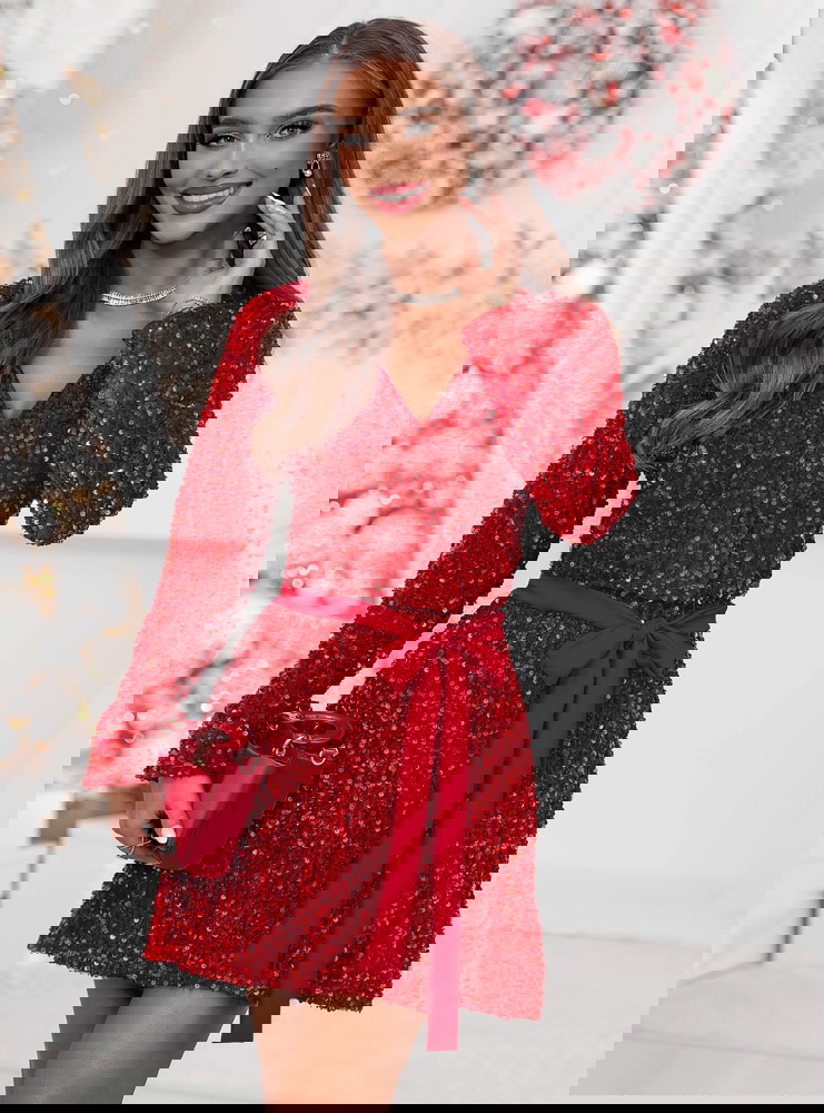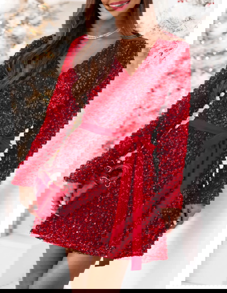 Malinowa świąteczna cekinowa sukienka z wiązaniem Kateline