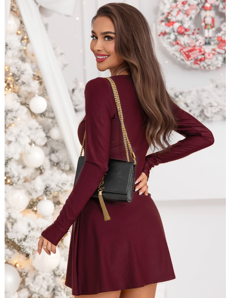 Bordowa sukienka z długimi rękawami Kianna to elegancka i kobieca propozycja, która zachwyca prostotą oraz wyrafinowanym stylem. Jej głęboki, ciepły odcień przyciąga spojrzenia i doskonale wpisuje się w jesienno-zimowy klimat. To model, który łączy klasykę z nowoczesnym minimalizmem, tworząc stylizację pełną wdzięku i klasy. Długość mini subtelnie podkreśla nogi, a dopasowana góra pięknie modeluje sylwetkę. Długie rękawy nadają całości elegancji i sprawiają, że sukienka idealnie sprawdzi się w chłodniejsze dni. Bordowy kolor symbolizuje pewność siebie i kobiecość, dzięki czemu każda stylizacja zyskuje wyjątkowy charakter. To sukienka, w której możesz wyglądać olśniewająco zarówno na co dzień, jak i podczas wyjątkowych okazji. Jej prosty, ale efektowny krój sprawia, że prezentuje się niezwykle gustownie. To klasyk, który z łatwością dopasujesz do swojego stylu – zawsze z odrobiną elegancji.