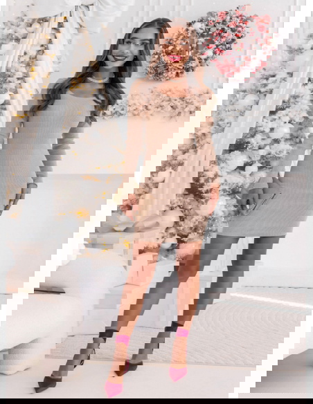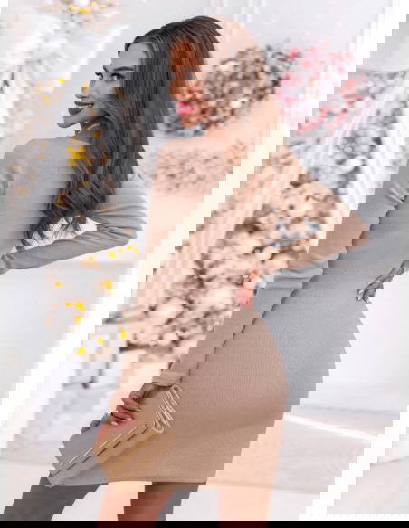 Beżowa prążkowana dopasowana świąteczna sukienka mini Jilleanne