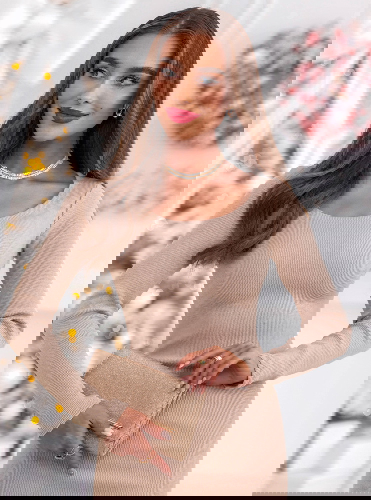 Beżowa prążkowana dopasowana sukienka mini Jilleanne to klasyka w najczystszym, kobiecym wydaniu. Jej stonowany odcień beżu nadaje stylizacji elegancji, lekkości i ponadczasowego uroku. To model, który idealnie wpisuje się w jesienno-zimowe trendy, łącząc prostotę z delikatną zmysłowością. Dopasowany krój podkreśla kobiece kształty, zachowując przy tym subtelny i naturalny charakter. To sukienka, która pozwala czuć się wyjątkowo w każdej sytuacji — bez względu na okazję. Długie rękawy nadają jej elegancji, a prążkowana struktura dodaje lekkości i stylowego wyrazu. Jej minimalistyczny design sprawia, że można ją dowolnie stylizować — zarówno na co dzień, jak i na wieczorne wyjścia. To propozycja, która łączy w sobie komfort, kobiecość i uniwersalność. Idealna dla kobiet, które lubią wyglądać modnie, ale w sposób niewymuszony i pełen klasy. Beżowa dopasowana mini to model, do którego z łatwością sięgniesz o każdej porze sezonu.