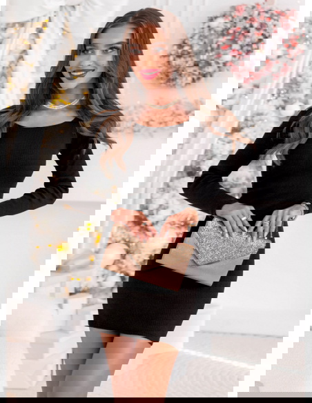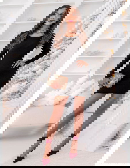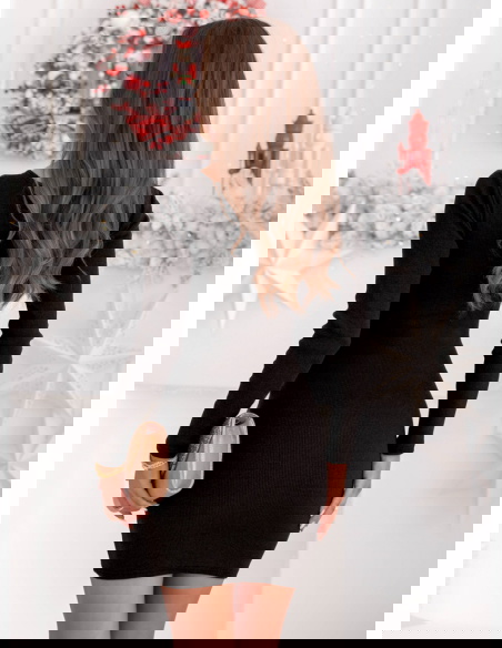 Czarna prążkowana dopasowana świąteczna sukienka mini Jilleanne