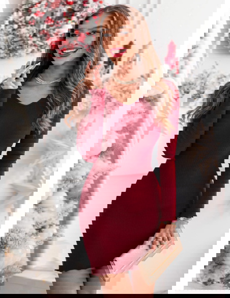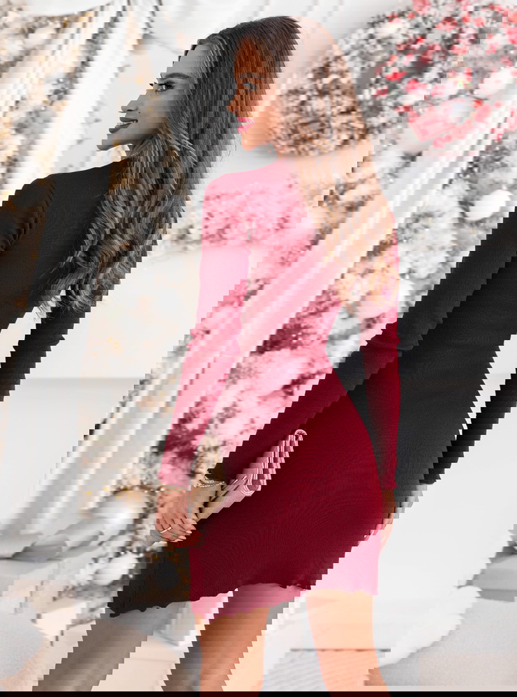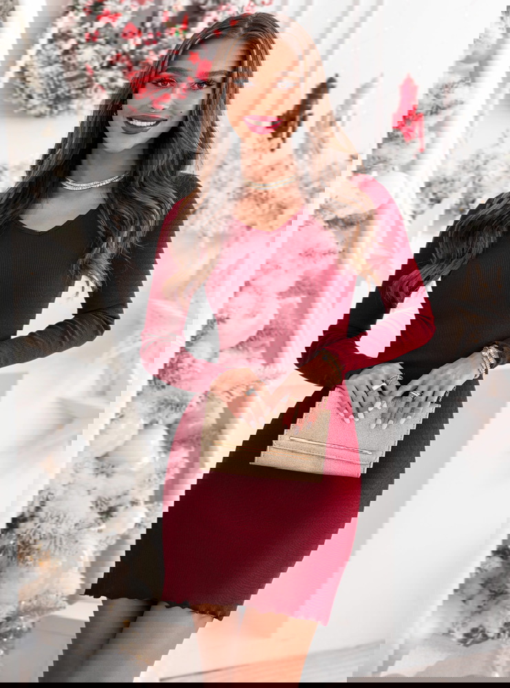 Bordowa prążkowana dopasowana sukienka mini Dezarae to połączenie kobiecego wdzięku, klasy i subtelnej elegancji. Jej głęboki, winny odcień wprowadza ciepły, świąteczny klimat, idealnie pasujący do zimowych stylizacji. To model, który podkreśla figurę w naturalny i pełen wdzięku sposób. Dopasowany krój pięknie eksponuje sylwetkę, a prosty fason sprawia, że sukienka wygląda niezwykle stylowo i uniwersalnie. Długie rękawy oraz klasyczny dekolt dodają jej harmonii i ponadczasowego charakteru. To idealny wybór dla kobiet, które cenią minimalizm, ale nie chcą rezygnować z elegancji. Bordowy kolor przyciąga uwagę i doskonale podkreśla urodę, wprowadzając odrobinę zmysłowości. Sukienka idealnie sprawdzi się w chłodniejsze dni, tworząc spójną, stylową całość z dodatkami w złotych lub neutralnych tonach. To model, który emanuje pewnością siebie i kobiecą siłą. Niezależnie od okazji – zawsze prezentuje się z klasą i wdziękiem.