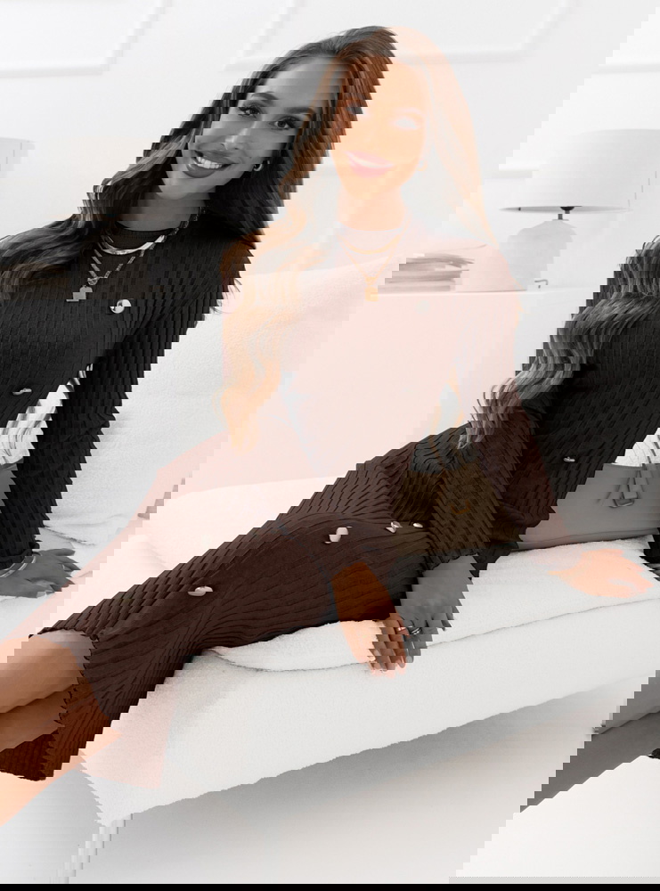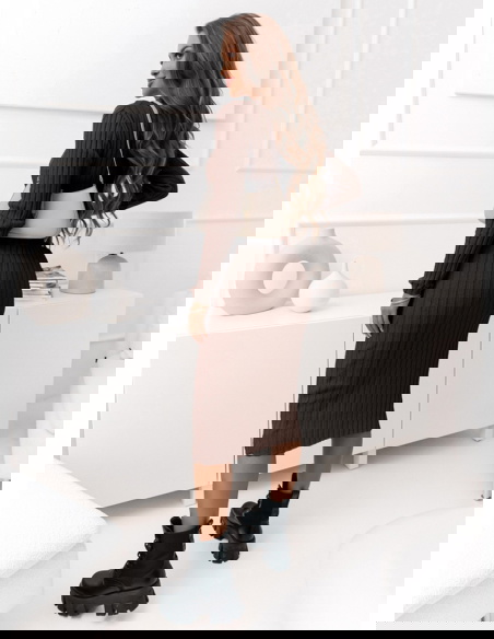 Czekoladowa sweterkowa prążkowana sukienka z ozdobnymi guzikami Daniella to idealne połączenie elegancji i codziennego komfortu. Jej ciepły, głęboki odcień wprowadza przytulny klimat, doskonale wpisując się w jesienno-zimowy sezon. Dopasowany krój pięknie podkreśla kobiecą sylwetkę, zachowując jednocześnie pełną swobodę ruchów. Długie rękawy i długość midi dodają jej klasy oraz sprawiają, że świetnie sprawdza się zarówno na co dzień, jak i na bardziej eleganckie okazje. Ozdobne guziki biegnące wzdłuż sukienki dodają stylowego charakteru i stanowią subtelny, ale efektowny detal. To model, który łączy wygodę swetra z kobiecością dopasowanej sukienki. Jej minimalistyczny, a zarazem elegancki design sprawia, że można ją wystylizować na wiele sposobów. Czekoladowa tonacja ociepla stylizację i dodaje jej wyrafinowanego uroku. To sukienka, która sprawdzi się w każdej garderobie – praktyczna, modna i niezwykle stylowa.